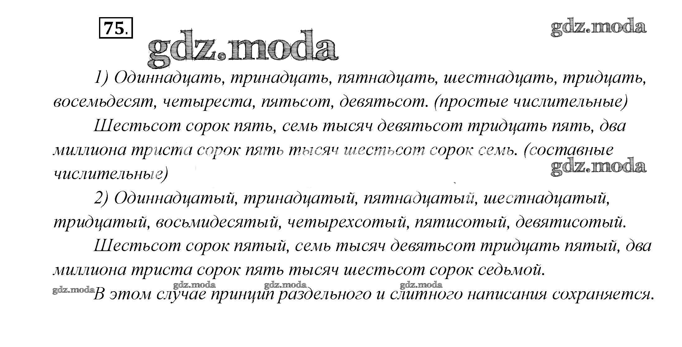 ГДЗ решение к заданию № 75 Русский язык 7 класс Шмелев А.Д. Вентана-граф 2016 ФГОС бесплатно на гдз.мода!