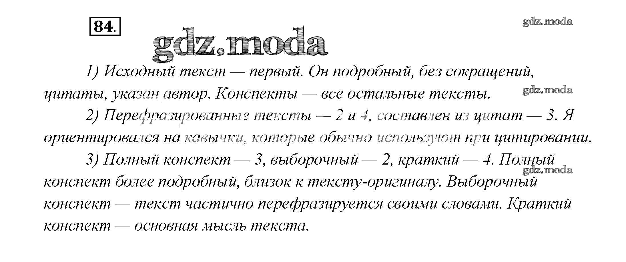 ОТВЕТ на задание № 84 Учебник по Русскому языку 7 класс Шмелёв Алгоритм успеха