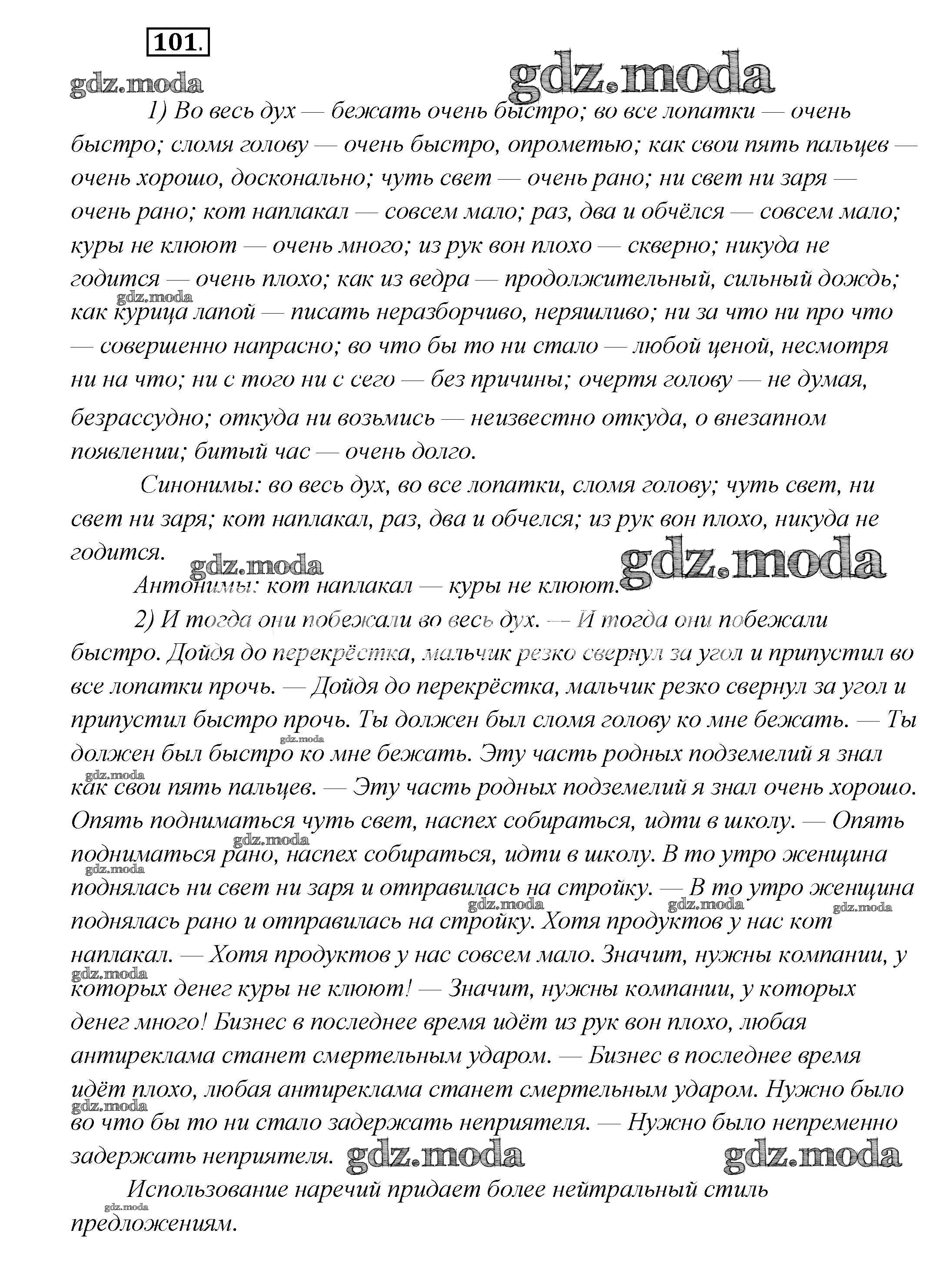 ГДЗ решение к заданию № 101 Русский язык 7 класс Шмелев А.Д. Вентана-граф 2016 ФГОС бесплатно на гдз.мода!