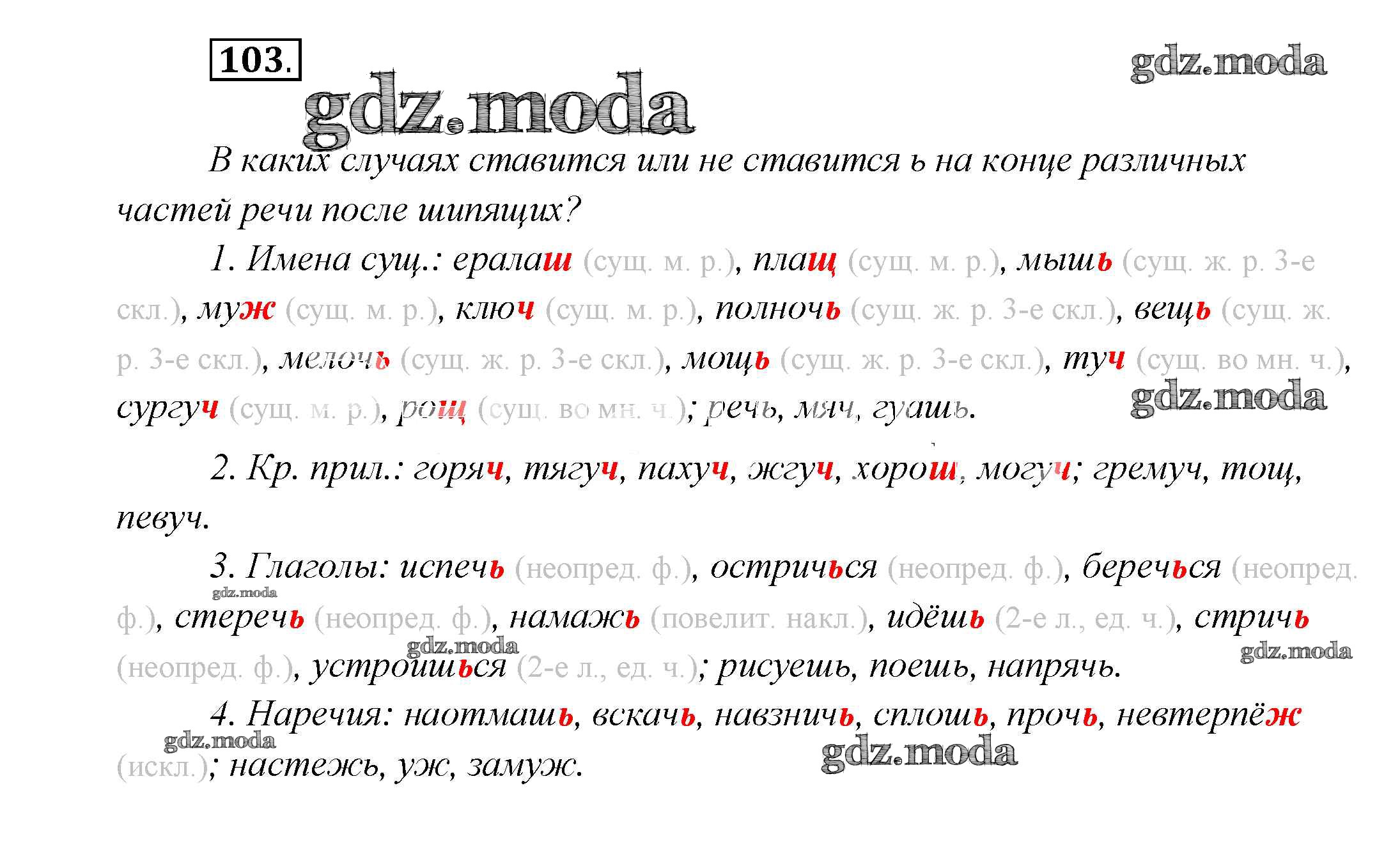 ОТВЕТ на задание № 103 Учебник по Русскому языку 7 класс Шмелёв Алгоритм успеха