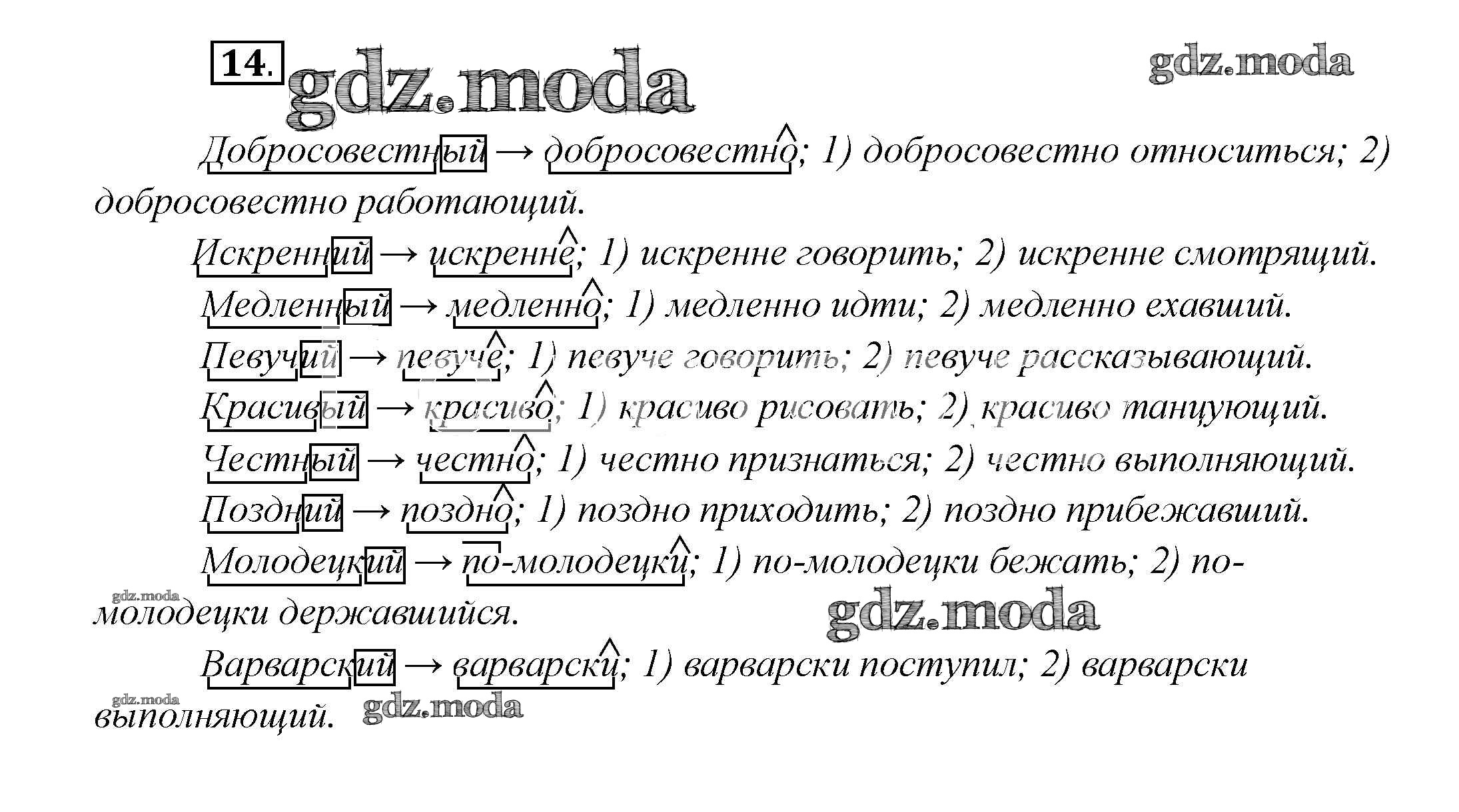 ГДЗ решение к заданию № 14 Русский язык 7 класс Шмелев А.Д. Вентана-граф 2016 ФГОС бесплатно на гдз.мода!
