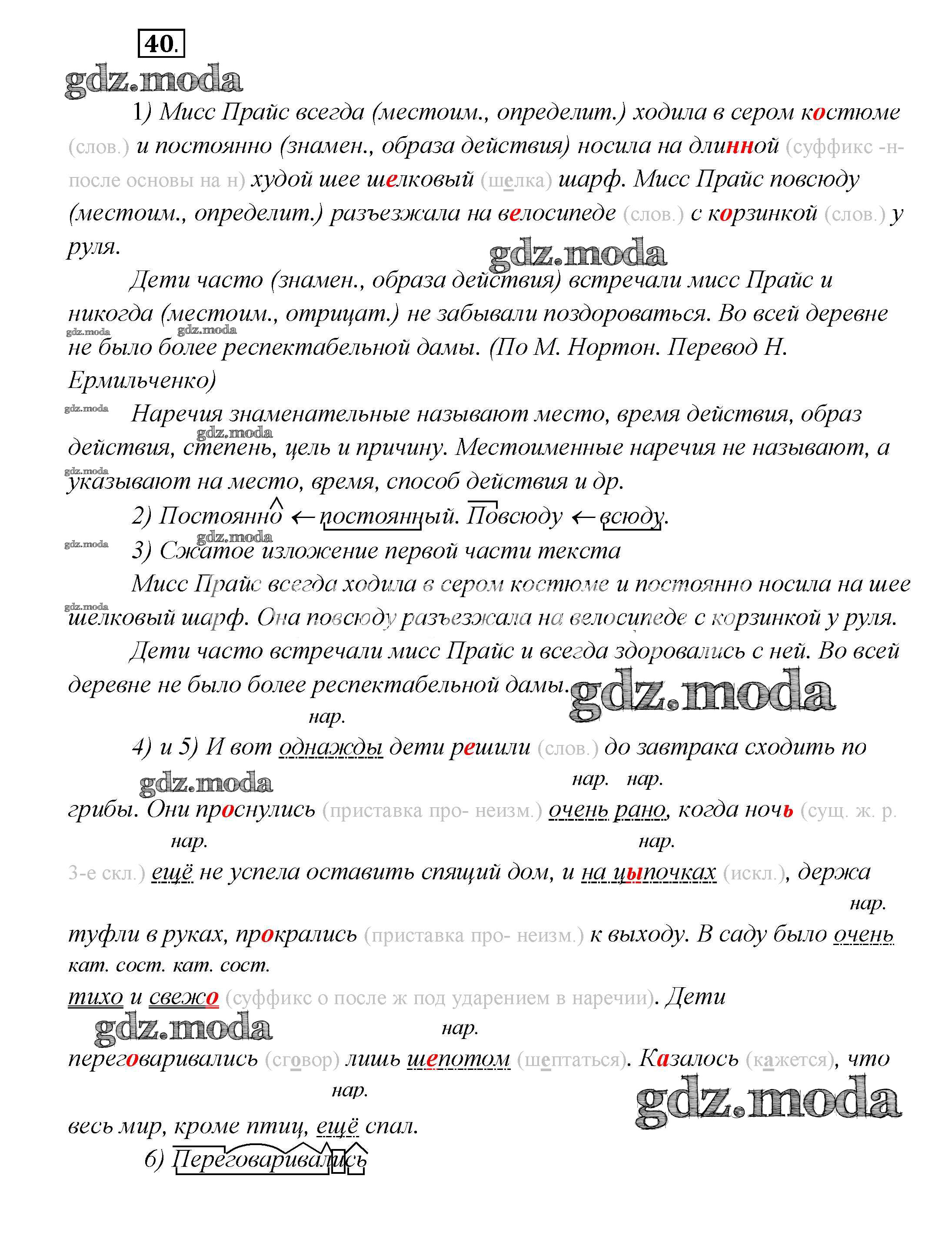 ГДЗ решение к заданию № 40 Русский язык 7 класс Шмелев А.Д. Вентана-граф 2016 ФГОС бесплатно на гдз.мода!