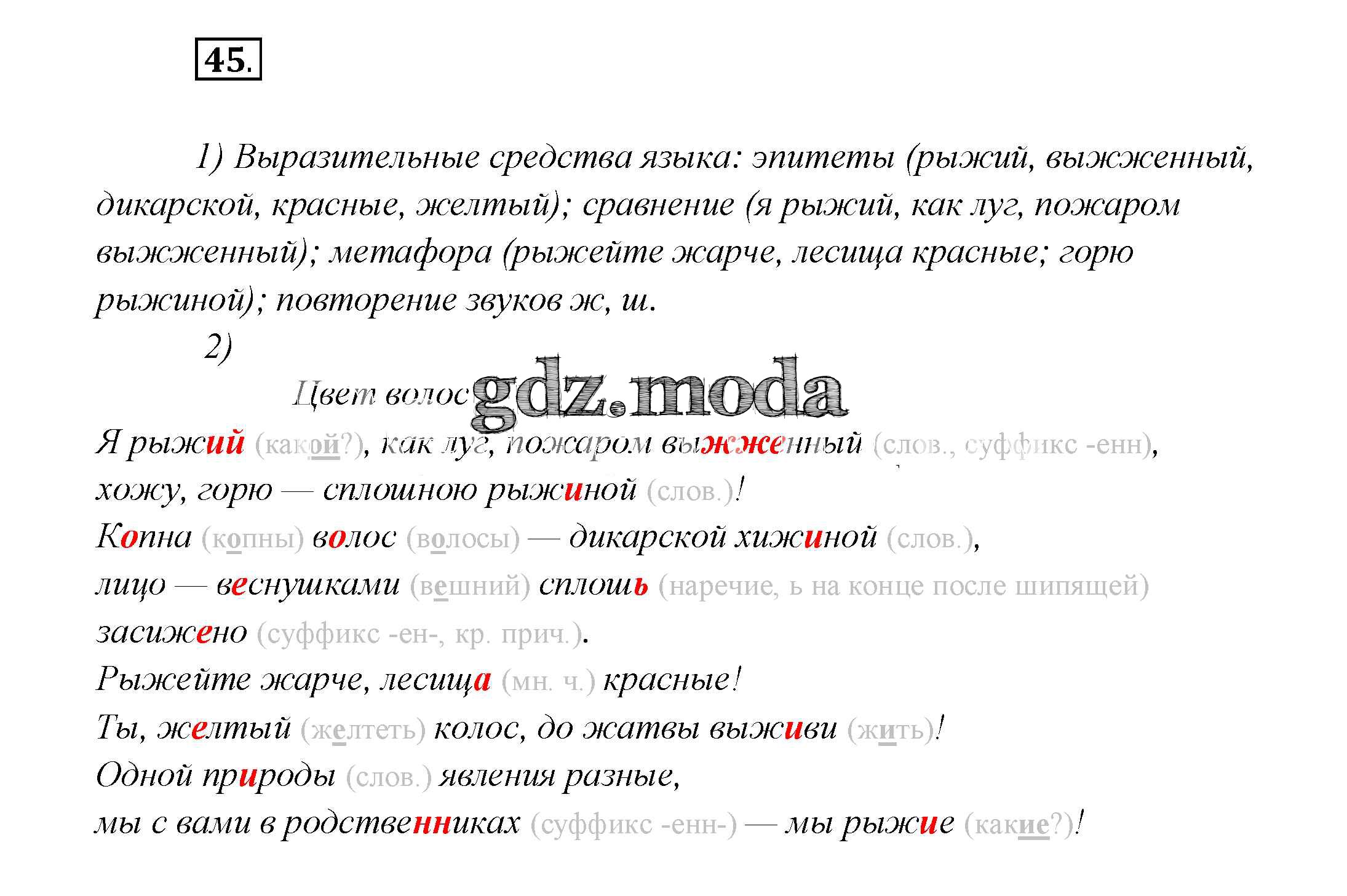 ГДЗ решение к заданию № 45 Русский язык 7 класс Шмелев А.Д. Вентана-граф 2016 ФГОС бесплатно на гдз.мода!