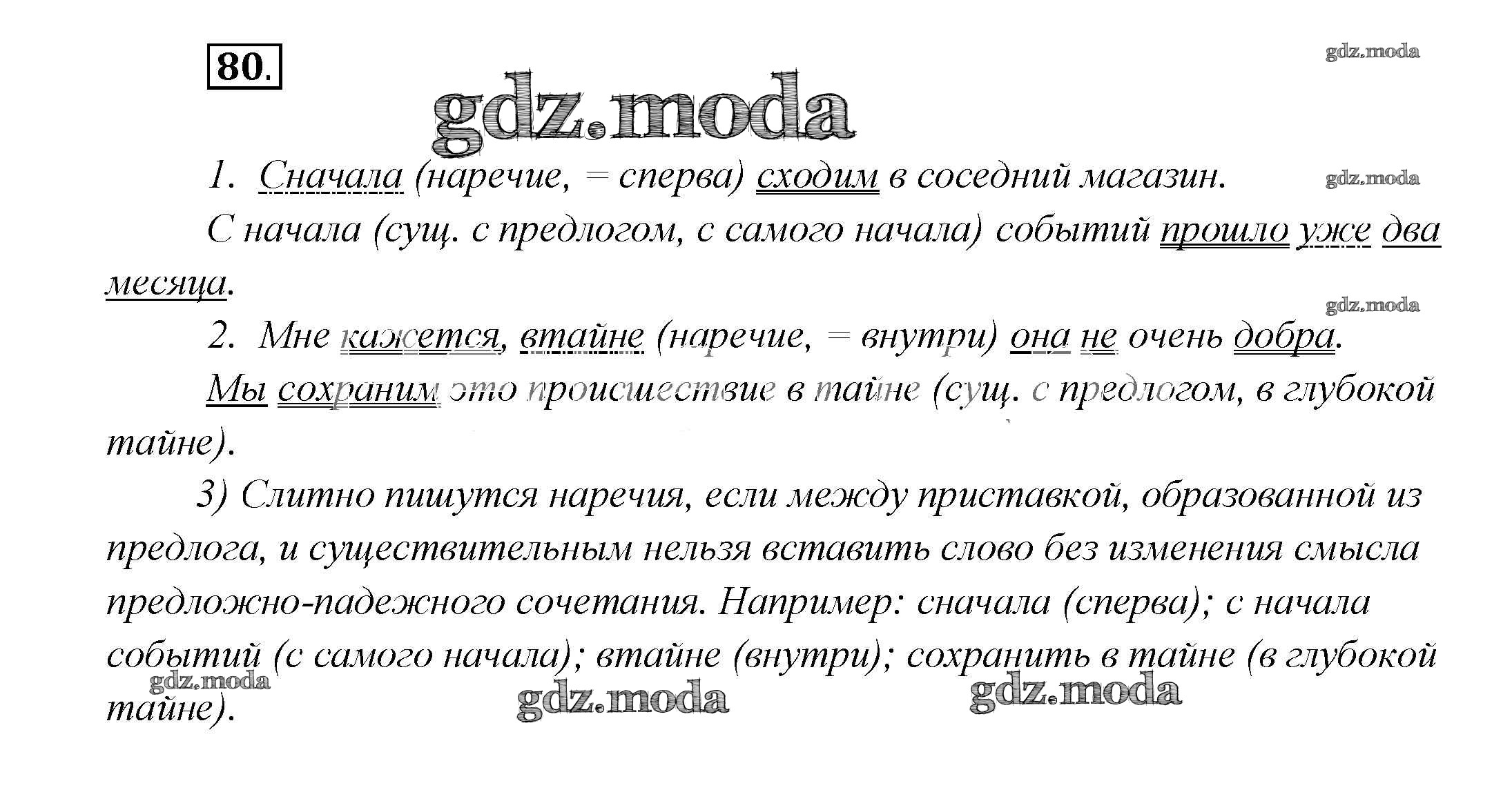 ГДЗ решение к заданию № 80 Русский язык 7 класс Шмелев А.Д. Вентана-граф 2016 ФГОС бесплатно на гдз.мода!