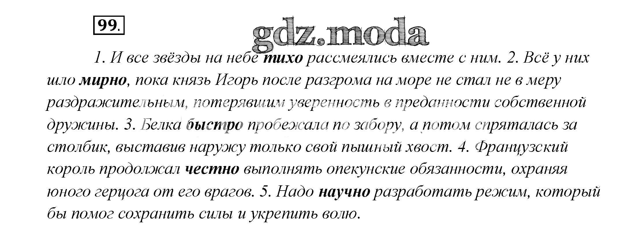 ГДЗ решение к заданию № 99 Русский язык 7 класс Шмелев А.Д. Вентана-граф 2016 ФГОС бесплатно на гдз.мода!
