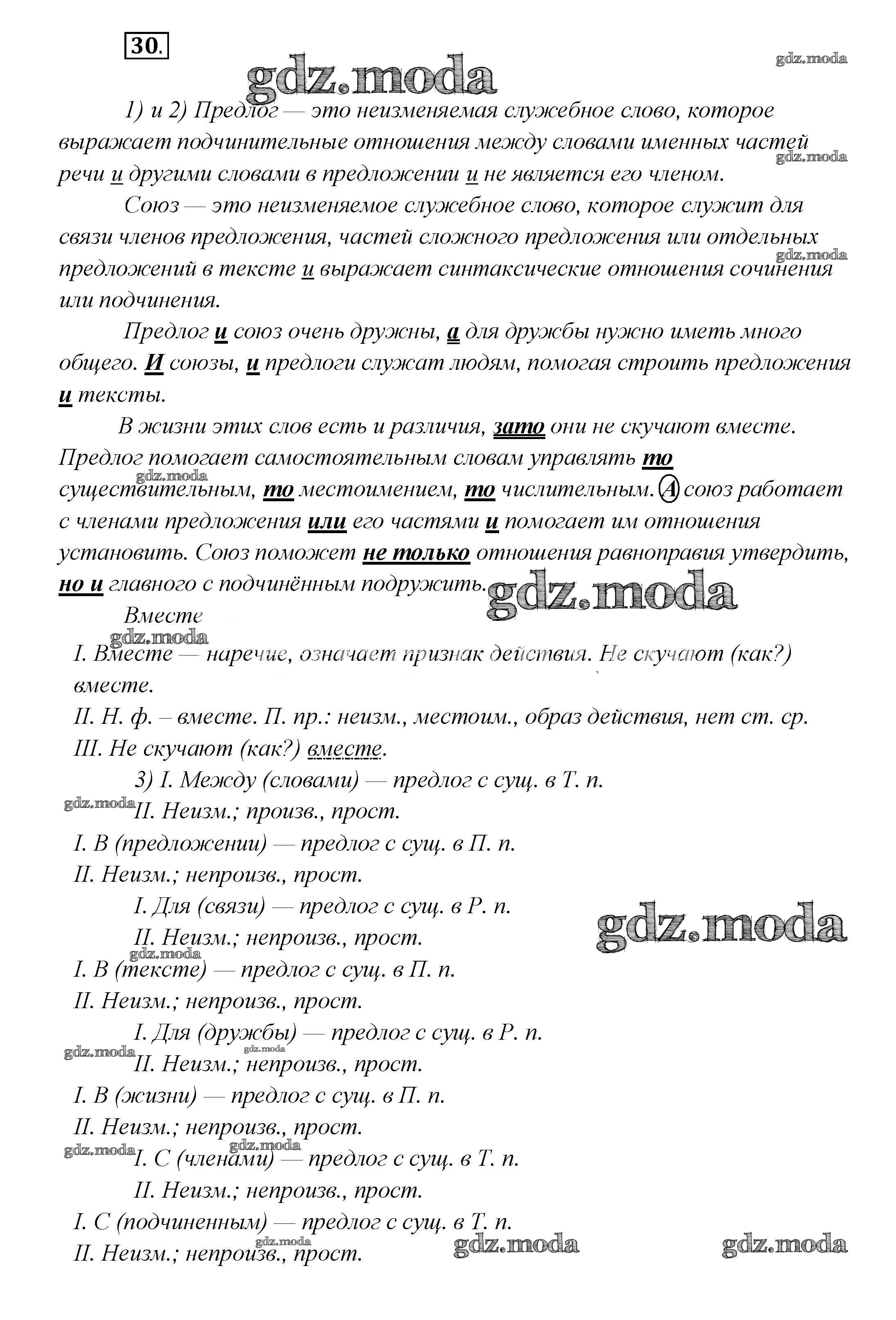 ГДЗ решение к заданию № 30 Русский язык 7 класс Шмелев А.Д. Вентана-граф 2016 ФГОС бесплатно на гдз.мода!