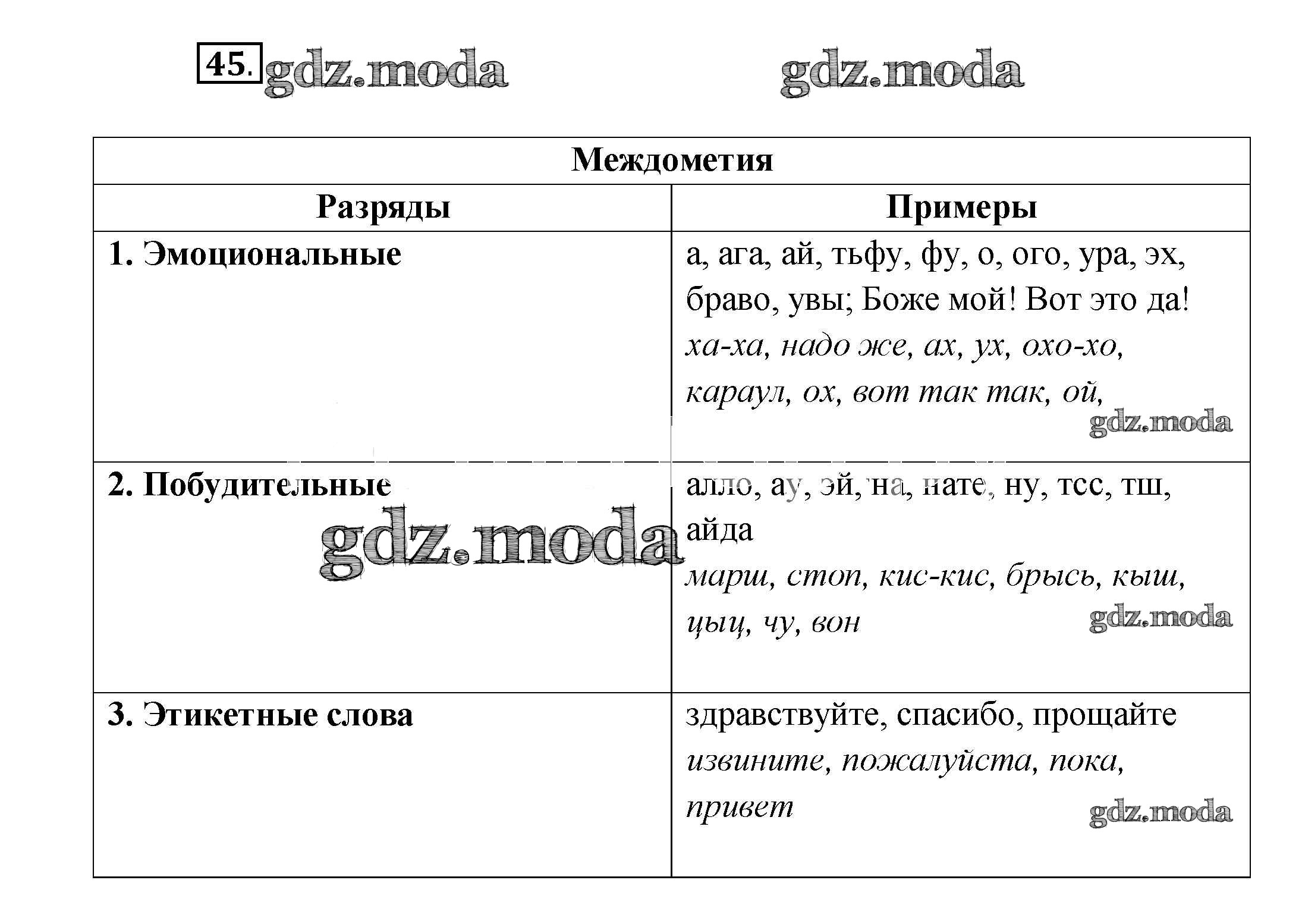 ГДЗ решение к заданию № 45 Русский язык 7 класс Шмелев А.Д. Вентана-граф 2016 ФГОС бесплатно на гдз.мода!