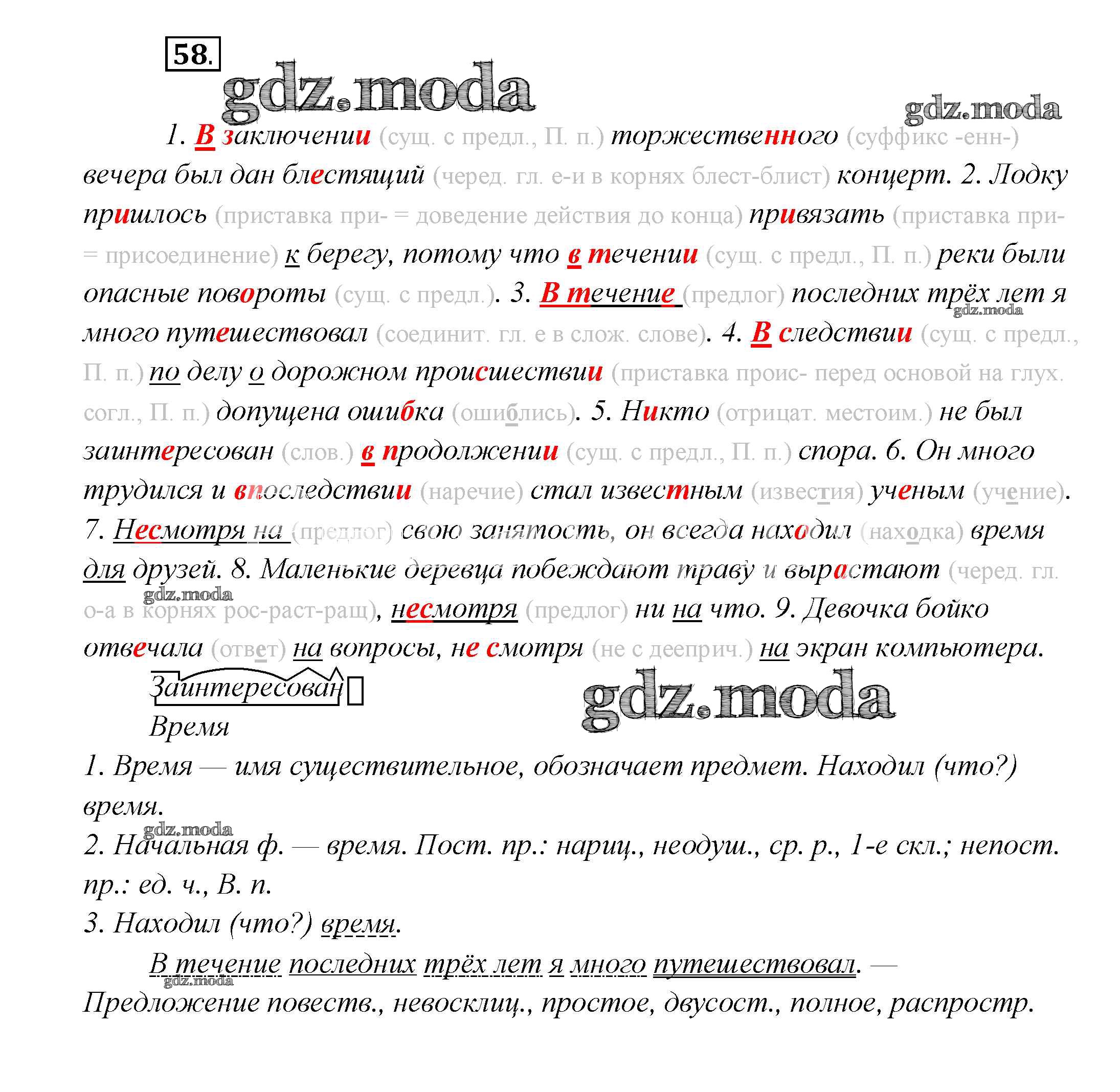 ГДЗ решение к заданию № 58 Русский язык 7 класс Шмелев А.Д. Вентана-граф 2016 ФГОС бесплатно на гдз.мода!