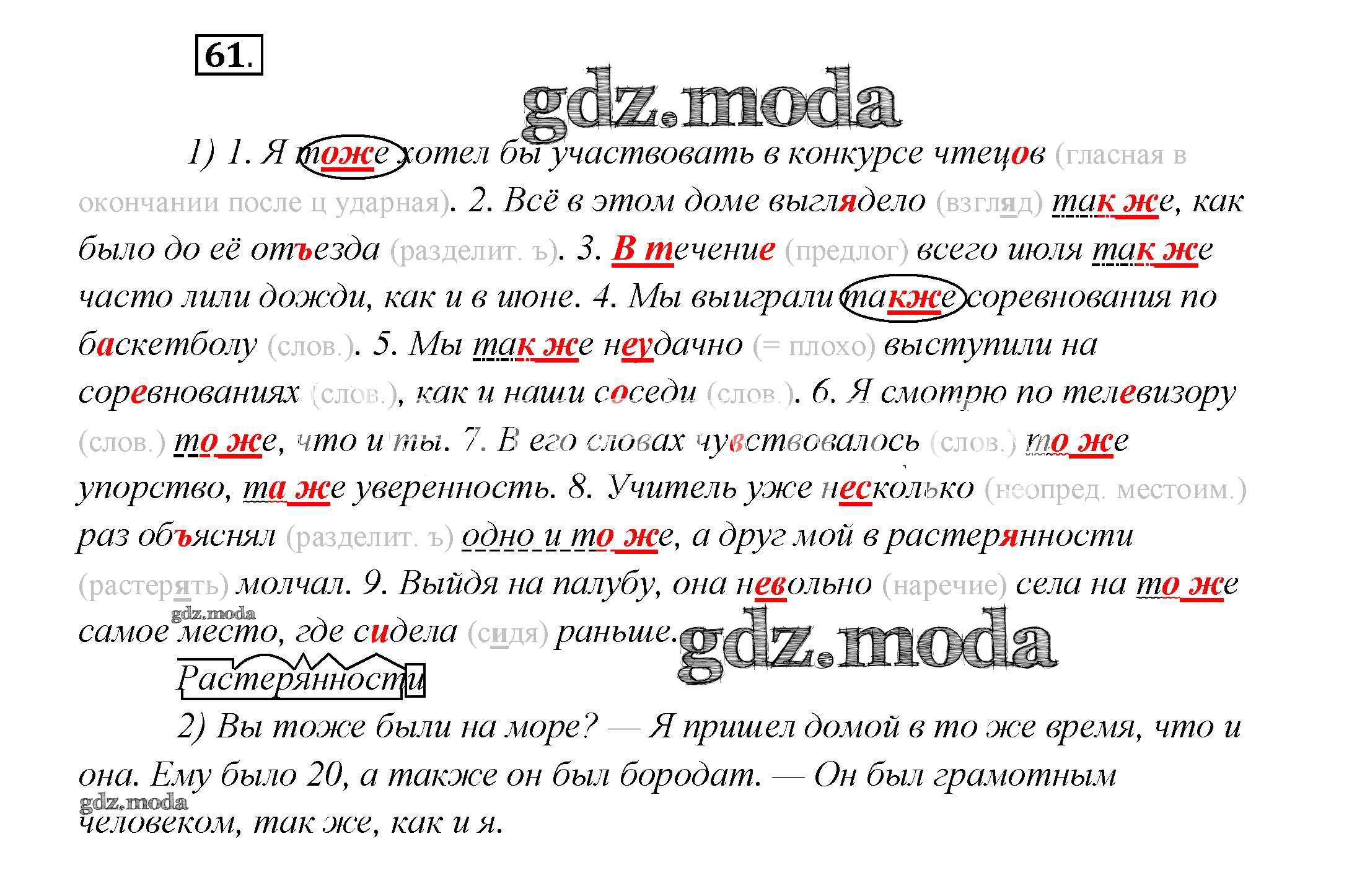 ГДЗ решение к заданию № 61 Русский язык 7 класс Шмелев А.Д. Вентана-граф 2016 ФГОС бесплатно на гдз.мода!