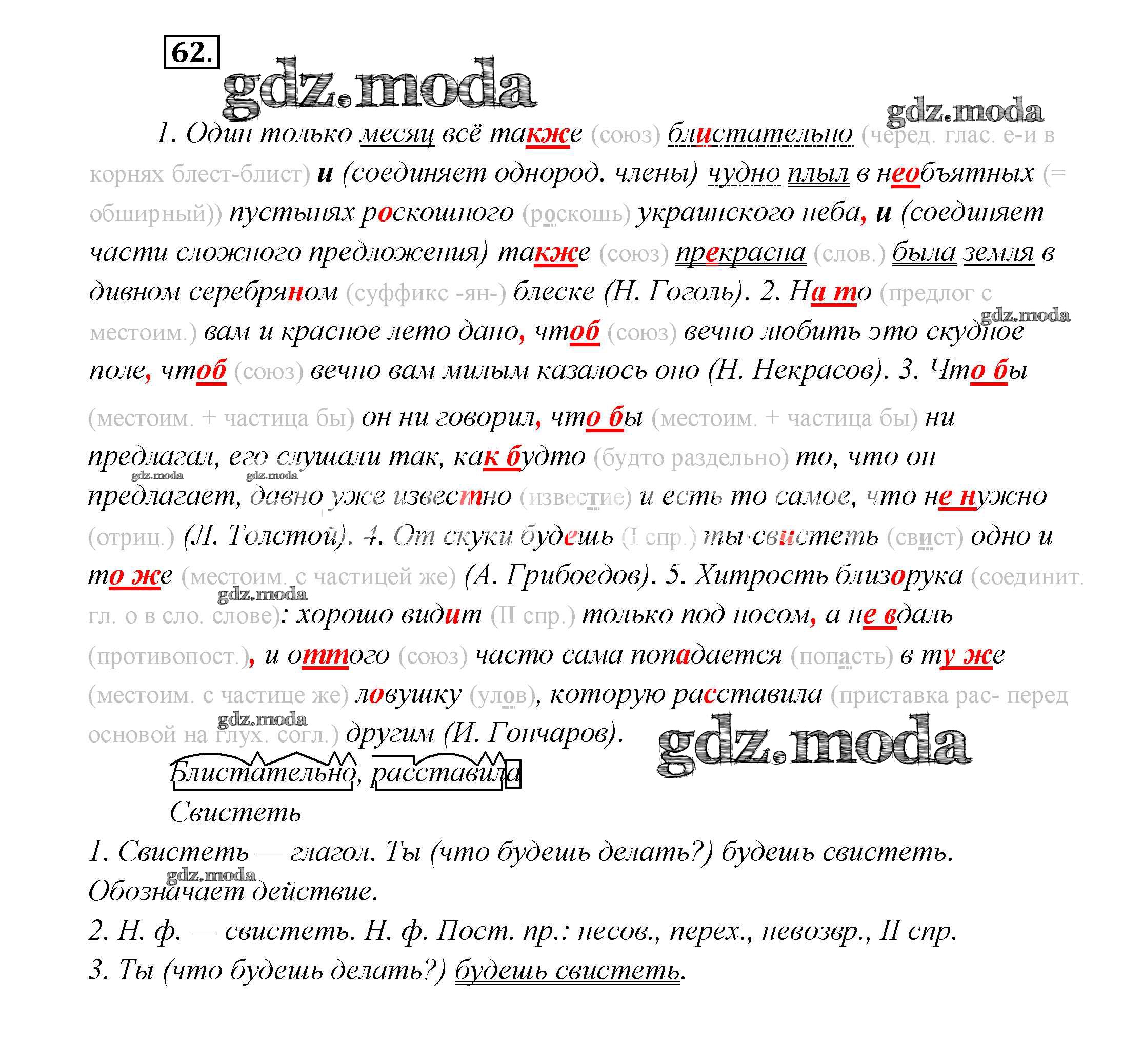ГДЗ решение к заданию № 62 Русский язык 7 класс Шмелев А.Д. Вентана-граф 2016 ФГОС бесплатно на гдз.мода!