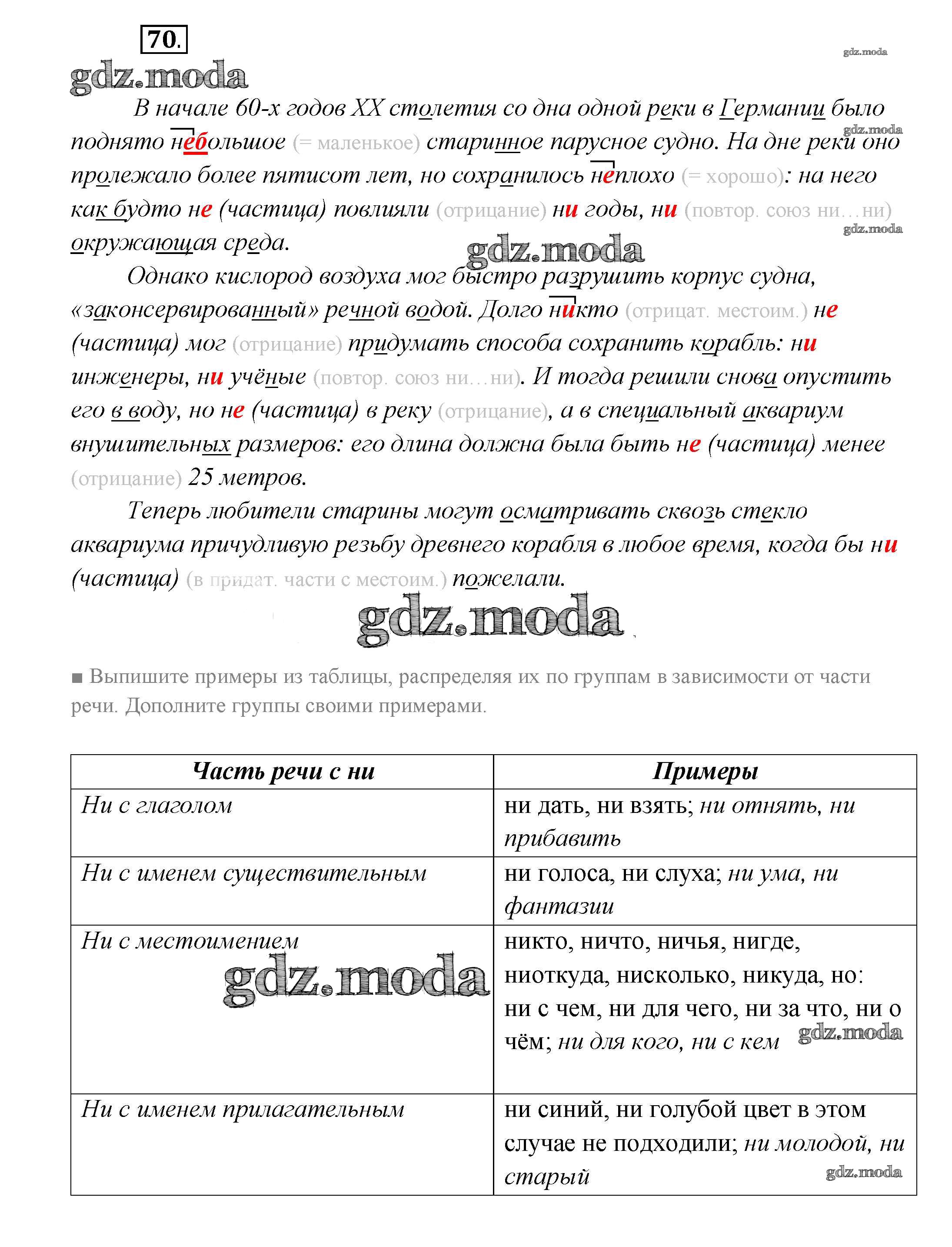 ГДЗ решение к заданию № 70 Русский язык 7 класс Шмелев А.Д. Вентана-граф 2016 ФГОС бесплатно на гдз.мода!