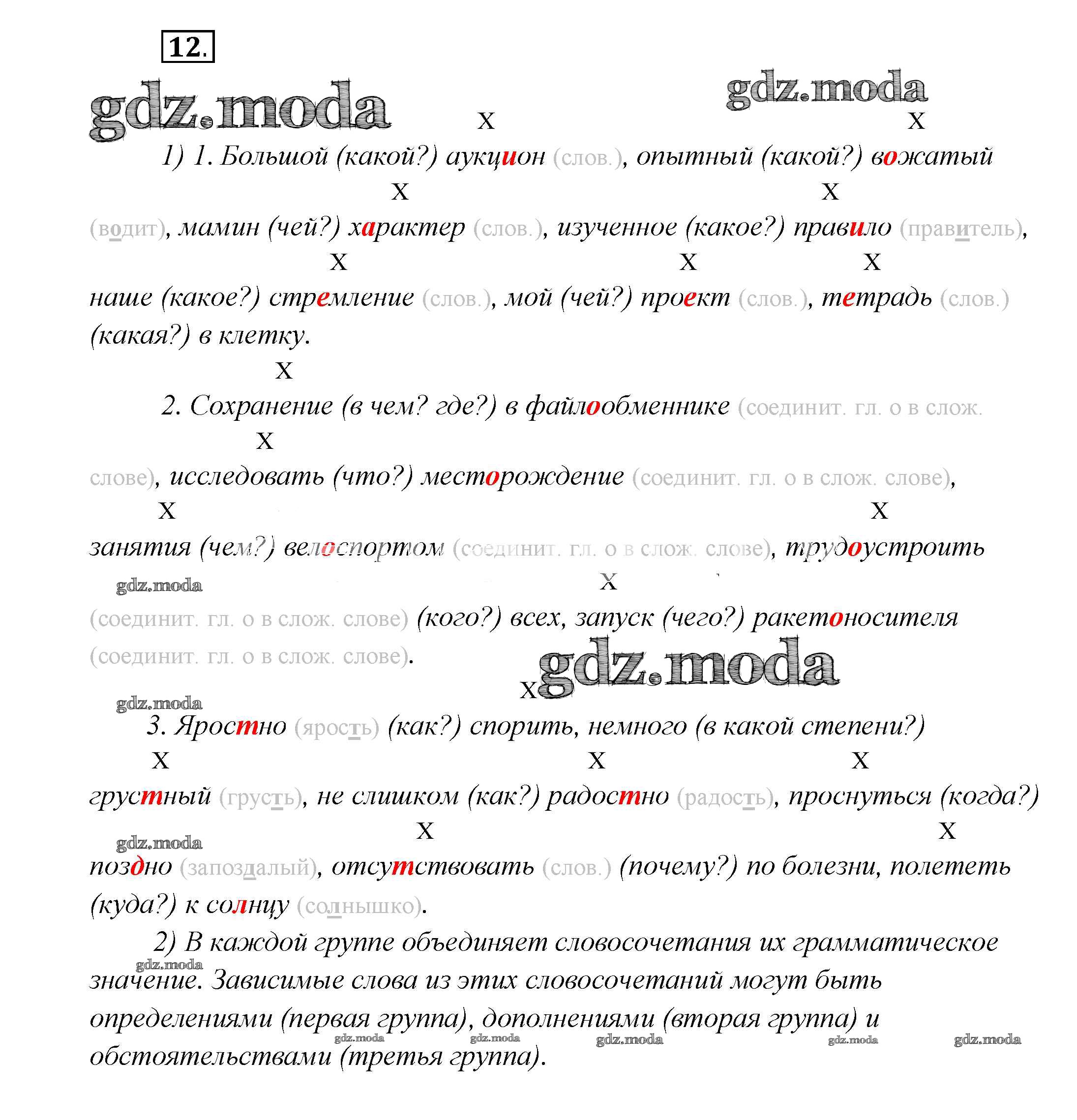 ГДЗ решение к заданию № 12 Русский язык 7 класс Шмелев А.Д. Вентана-граф 2016 ФГОС бесплатно на гдз.мода!