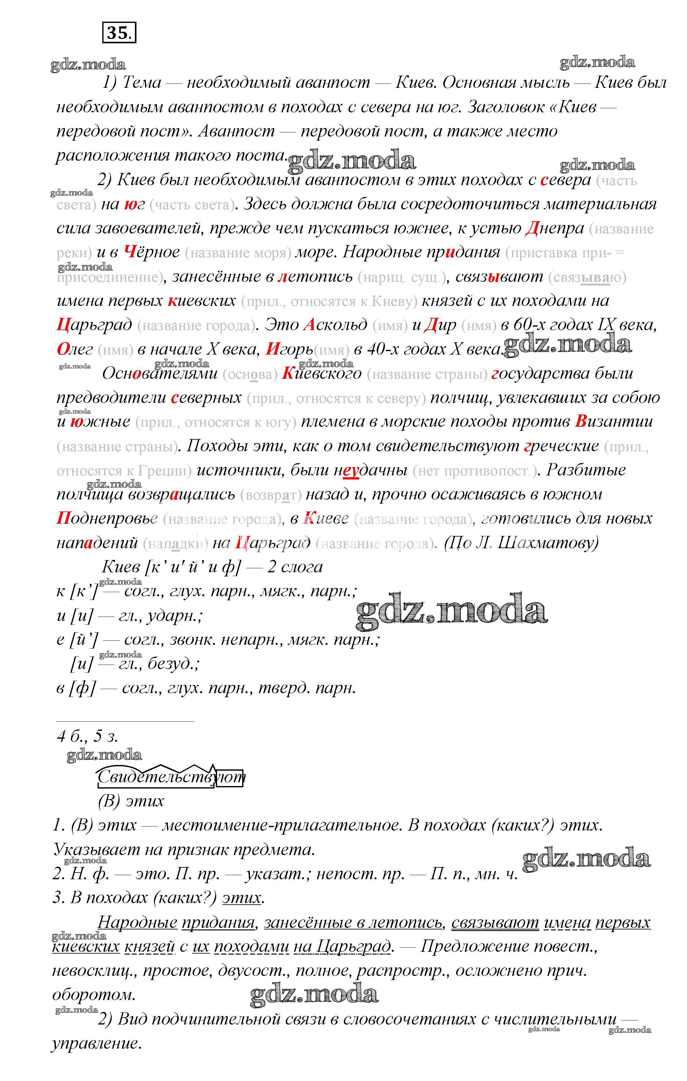 ГДЗ решение к заданию № 35 Русский язык 7 класс Шмелев А.Д. Вентана-граф 2016 ФГОС бесплатно на гдз.мода!
