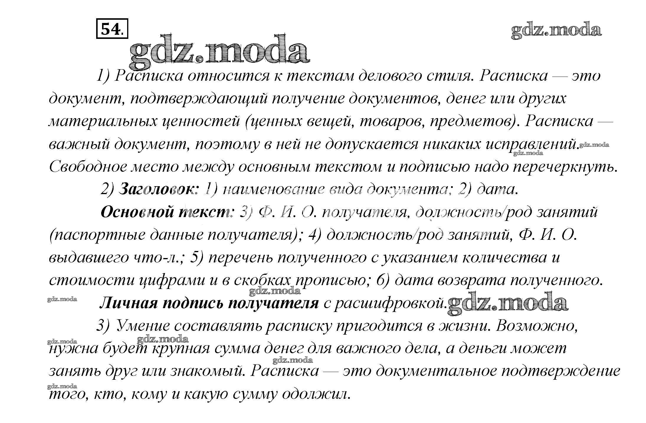 ОТВЕТ на задание № 54 Учебник по Русскому языку 7 класс Шмелёв Алгоритм успеха