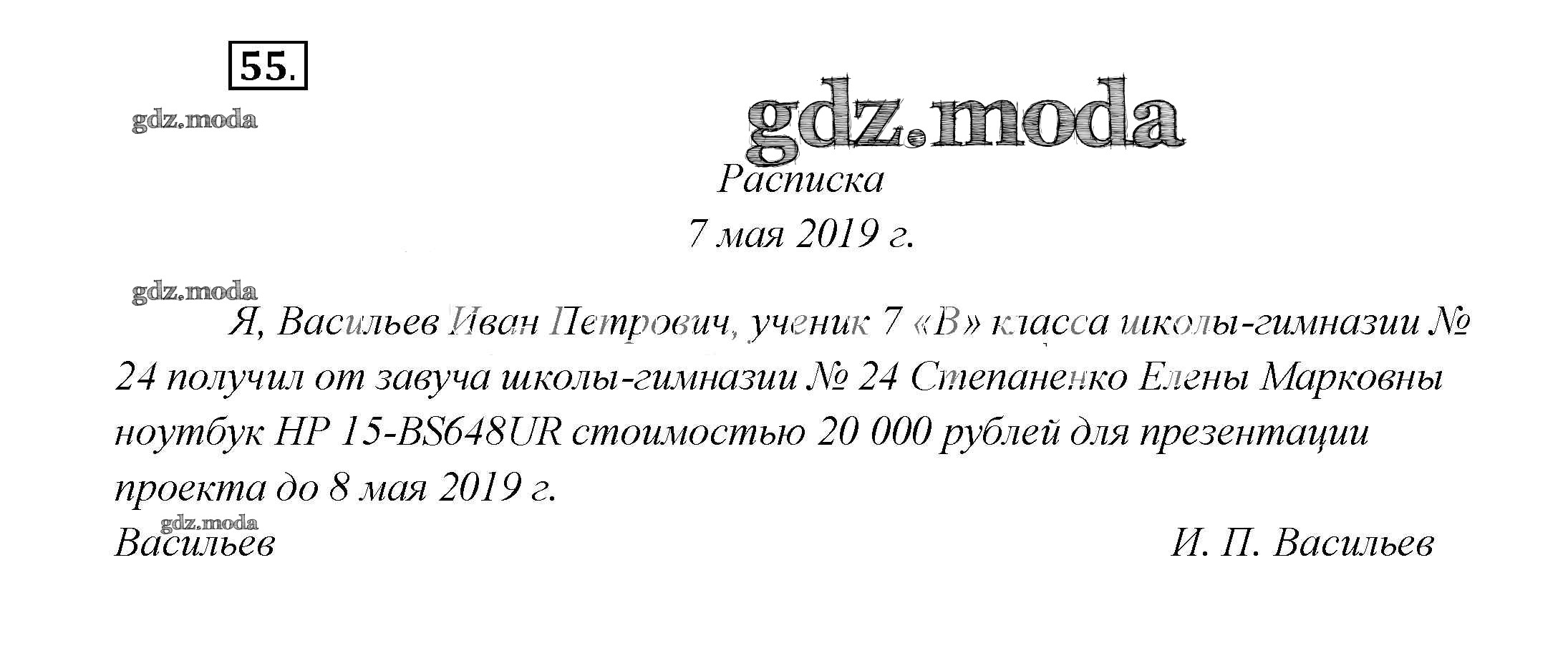ОТВЕТ на задание № 55 Учебник по Русскому языку 7 класс Шмелёв Алгоритм успеха