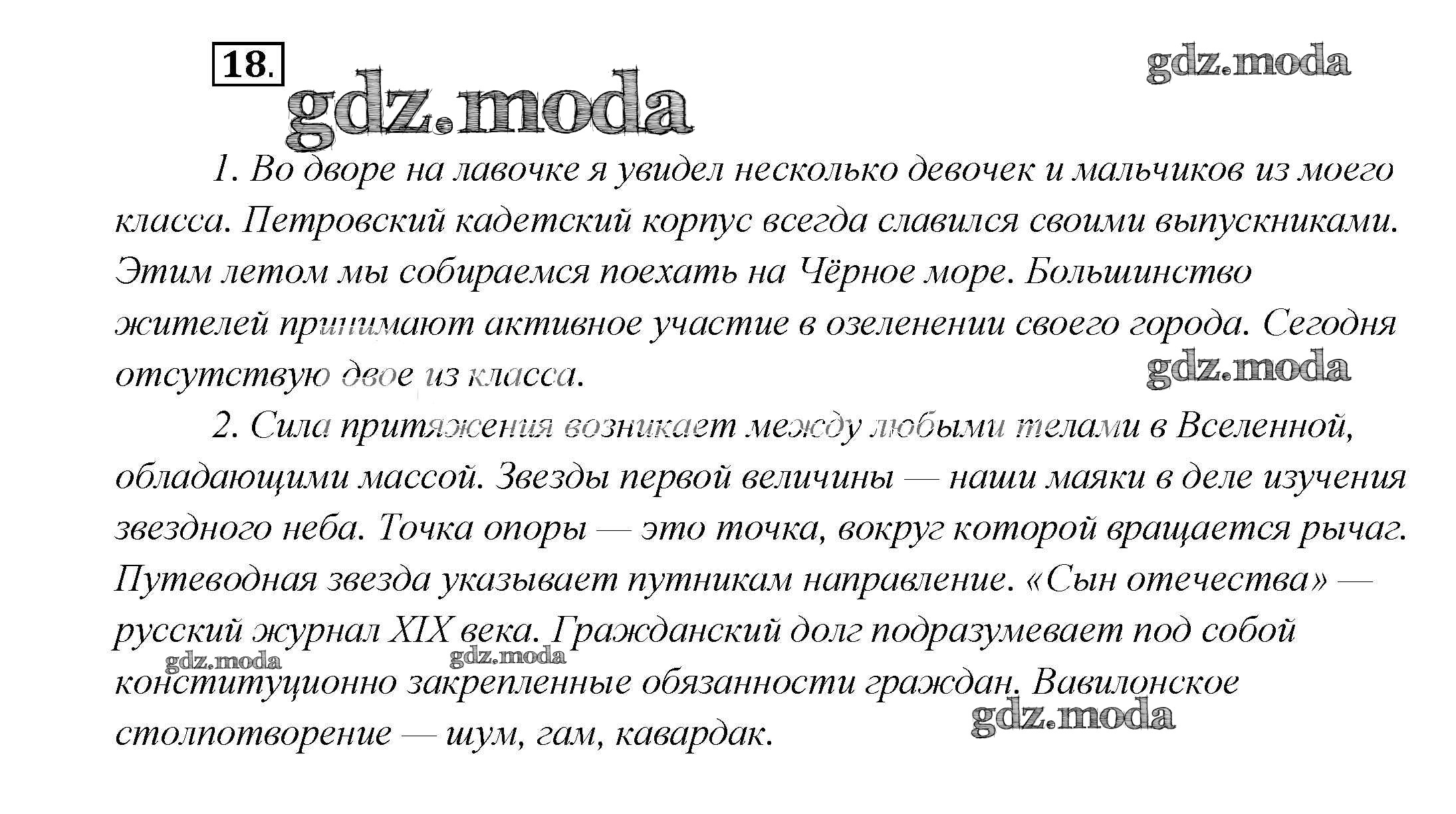 ГДЗ решение к заданию № 18 Русский язык 7 класс Шмелев А.Д. Вентана-граф 2016 ФГОС бесплатно на гдз.мода!