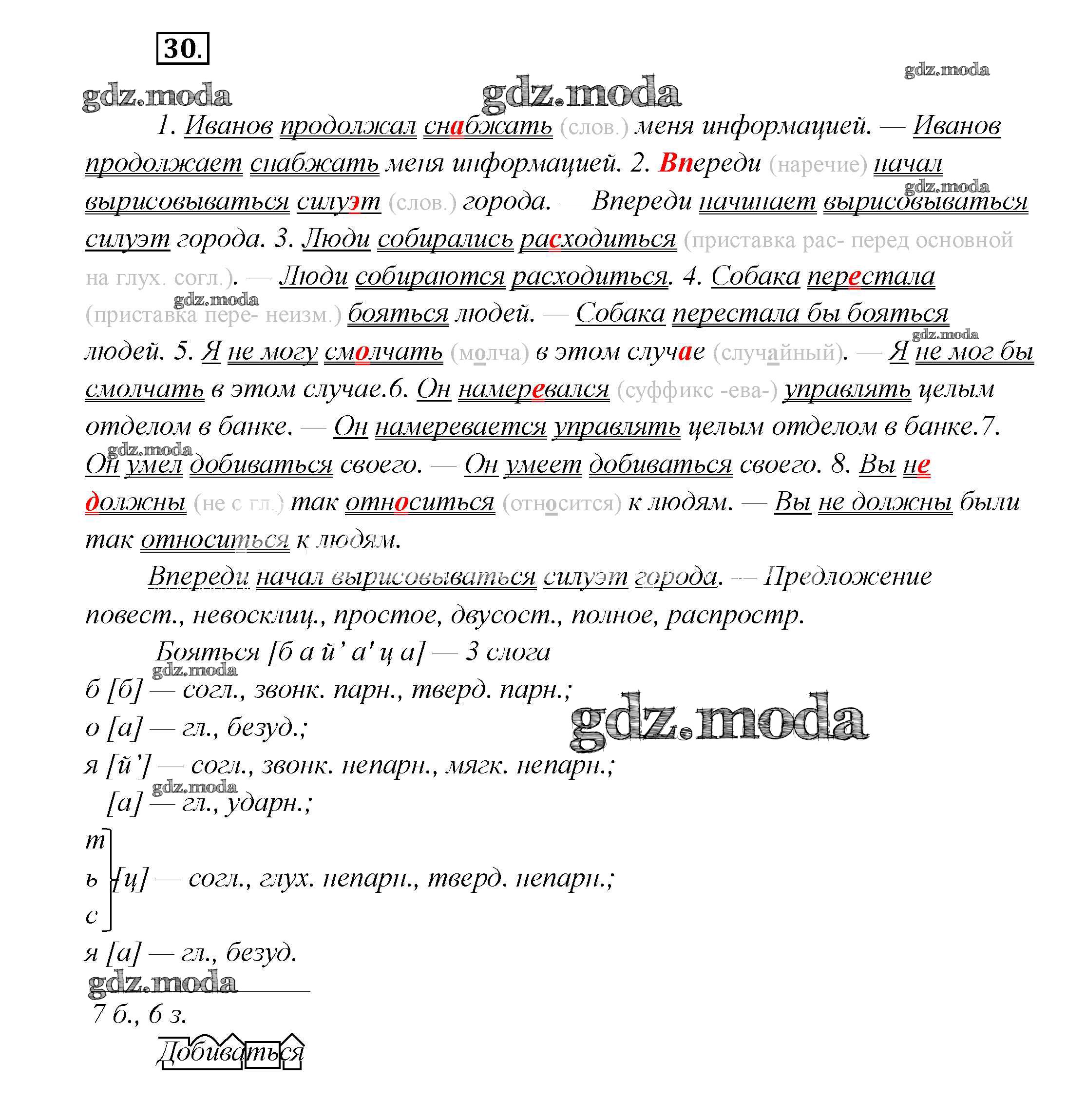 ГДЗ решение к заданию № 30 Русский язык 7 класс Шмелев А.Д. Вентана-граф 2016 ФГОС бесплатно на гдз.мода!