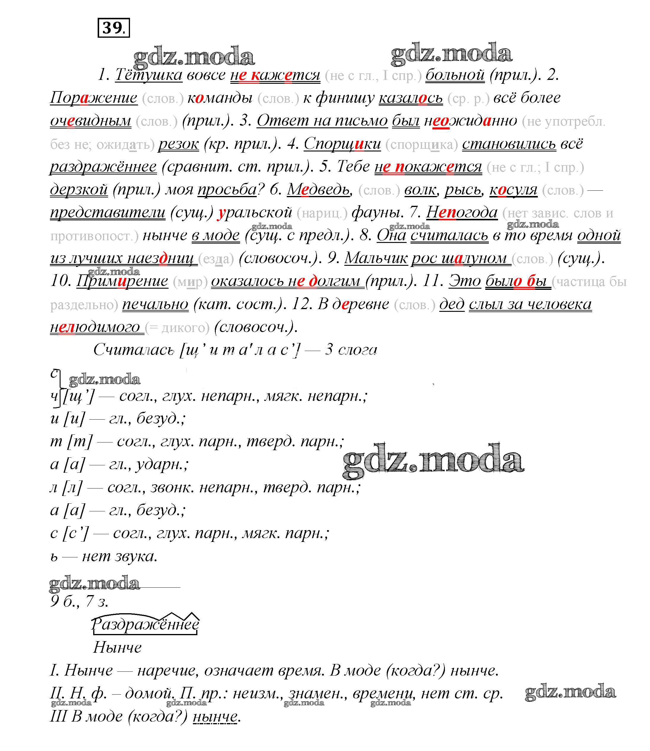 ГДЗ решение к заданию № 39 Русский язык 7 класс Шмелев А.Д. Вентана-граф 2016 ФГОС бесплатно на гдз.мода!