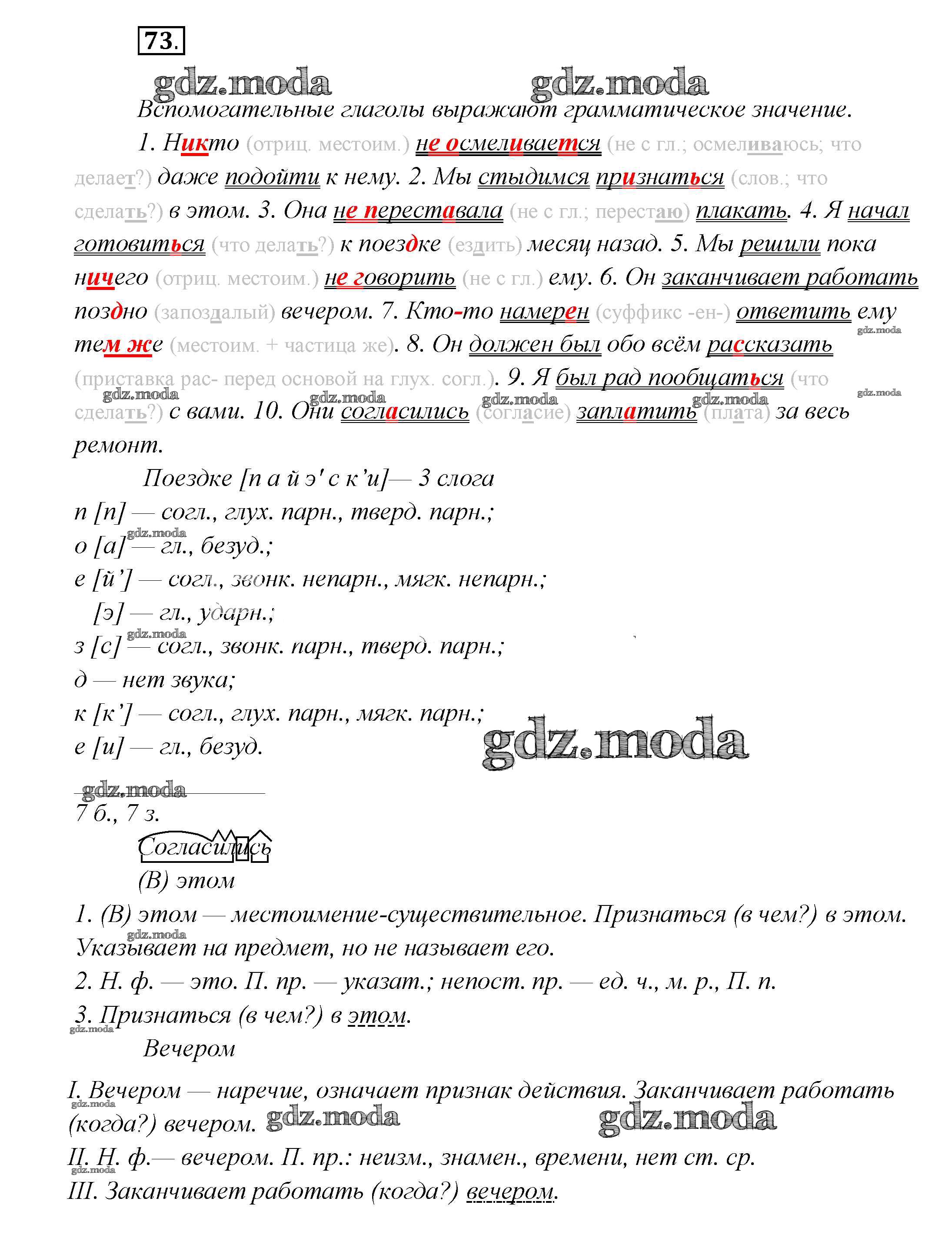 ОТВЕТ на задание № 73 Учебник по Русскому языку 7 класс Шмелёв Алгоритм успеха