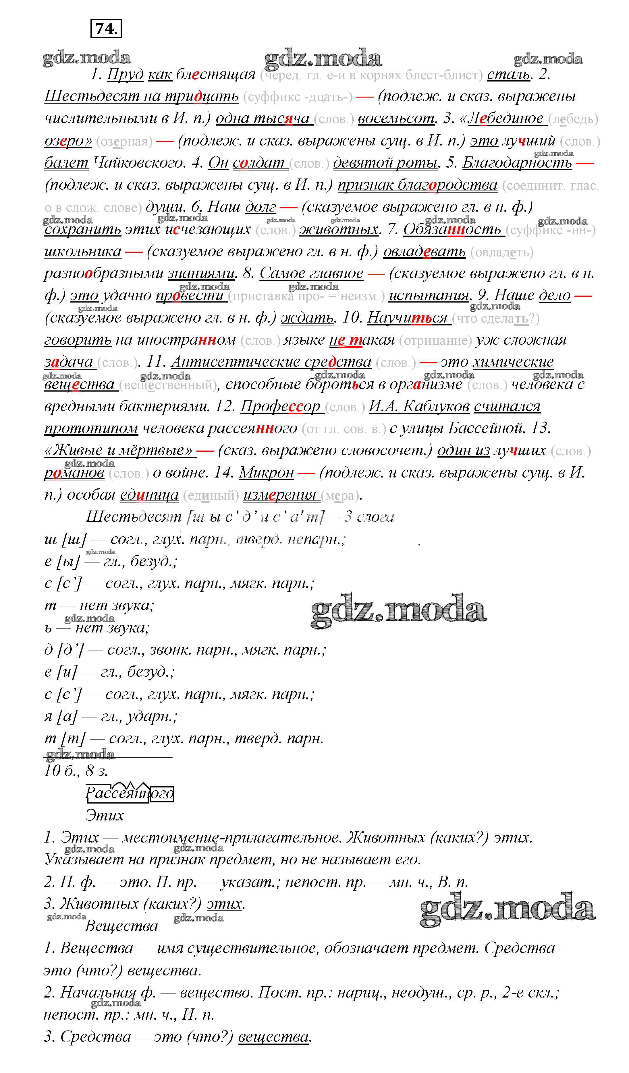 ГДЗ решение к заданию № 74 Русский язык 7 класс Шмелев А.Д. Вентана-граф 2016 ФГОС бесплатно на гдз.мода!