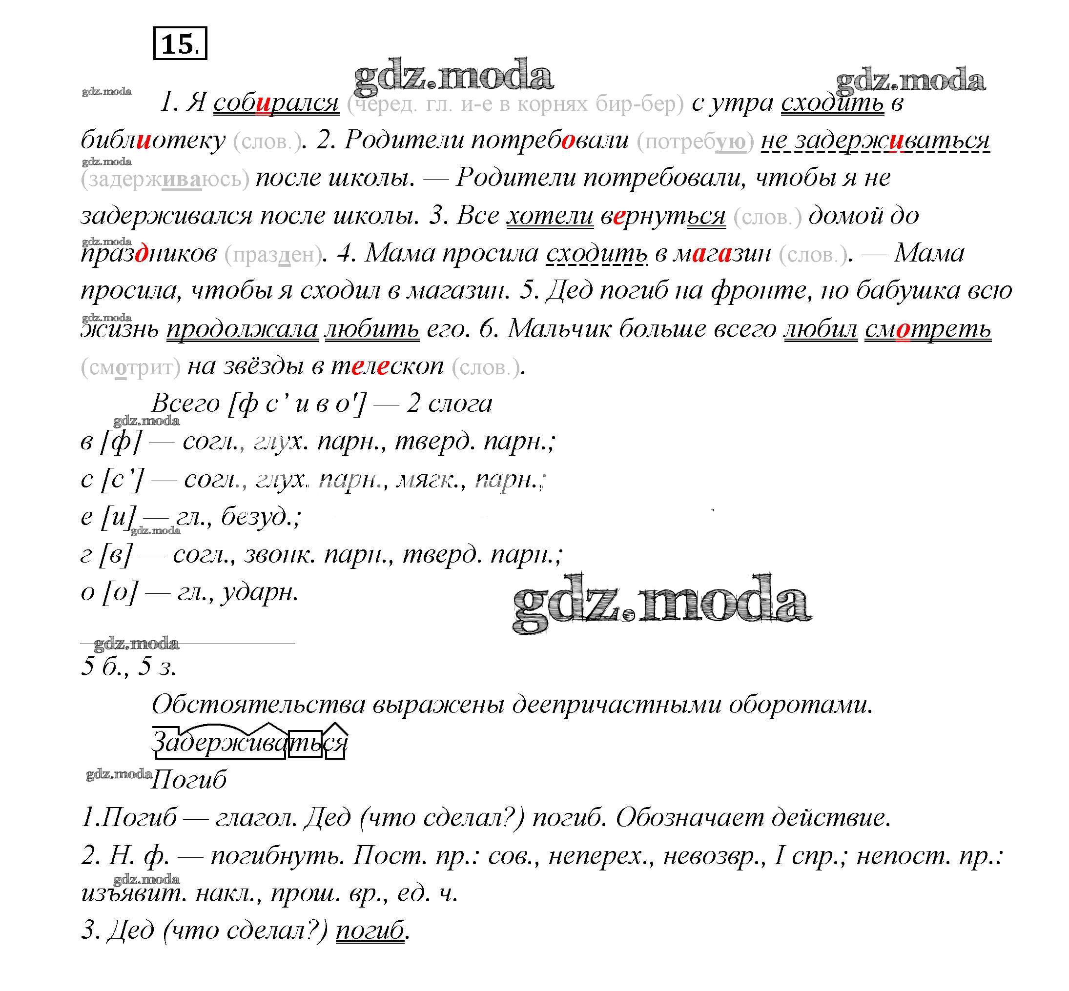 ГДЗ решение к заданию № 15 Русский язык 7 класс Шмелев А.Д. Вентана-граф 2016 ФГОС бесплатно на гдз.мода!