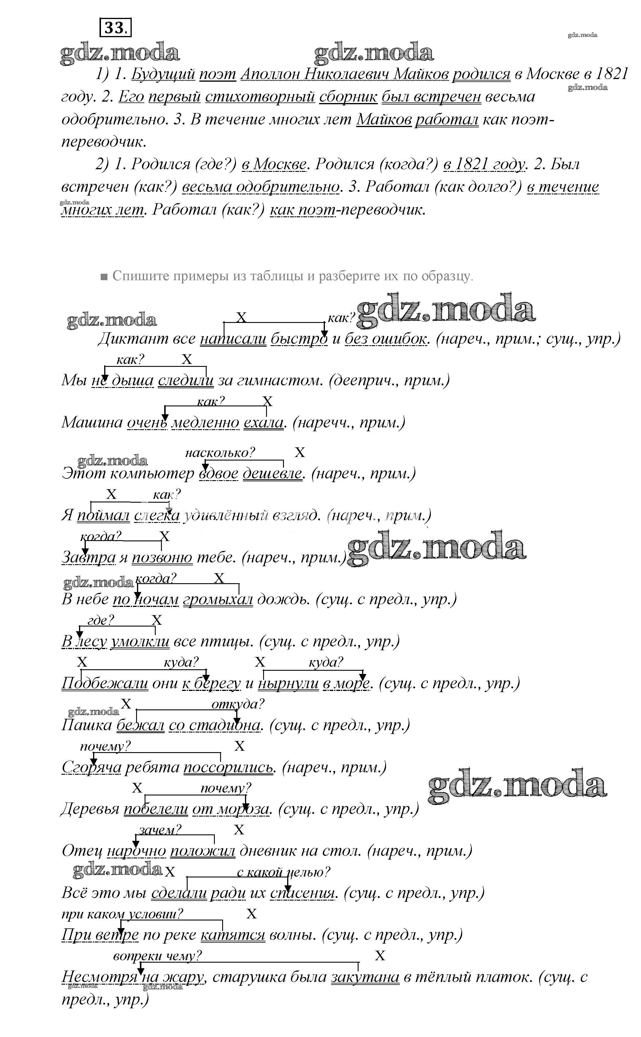 ГДЗ решение к заданию № 33 Русский язык 7 класс Шмелев А.Д. Вентана-граф 2016 ФГОС бесплатно на гдз.мода!