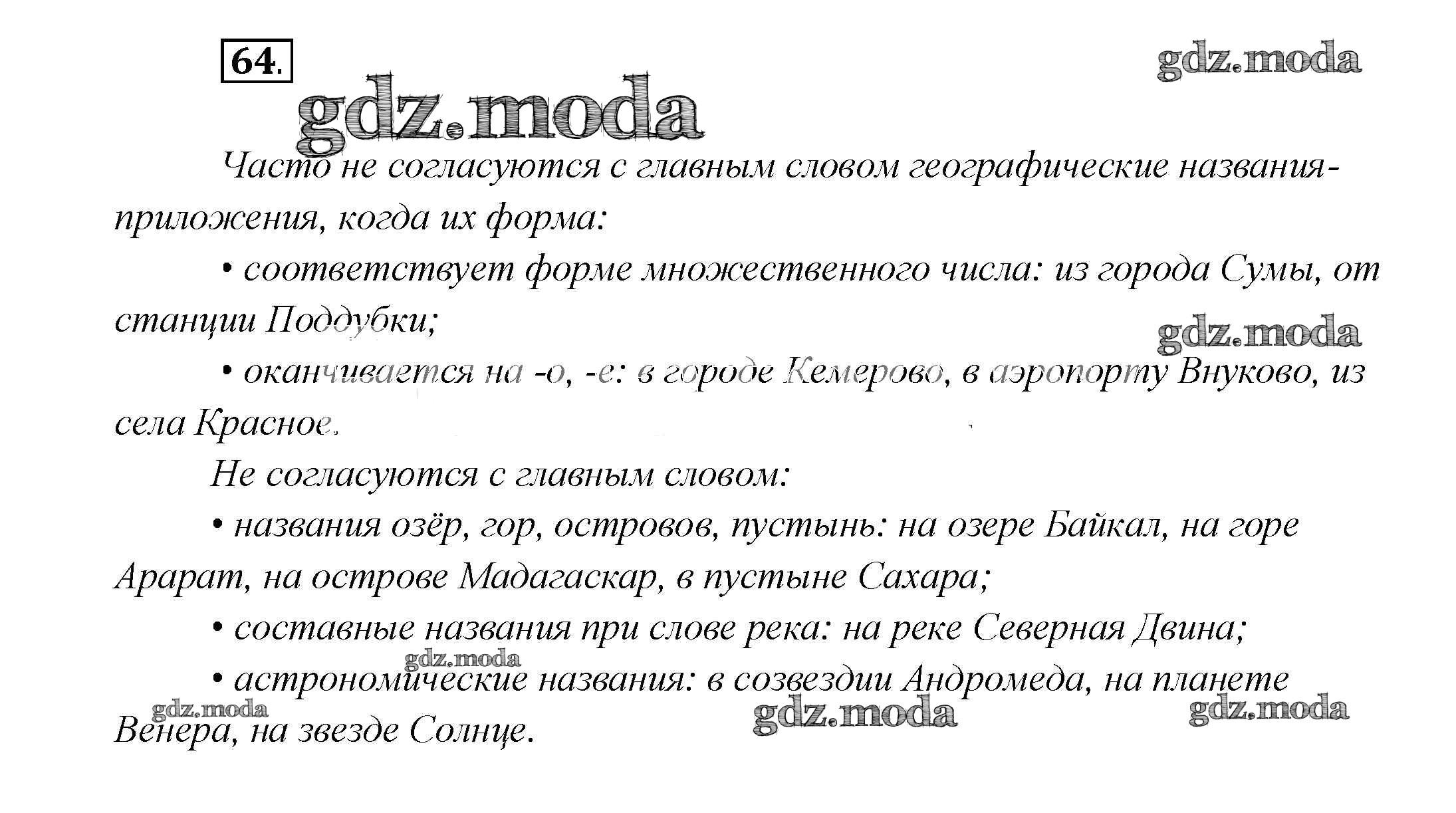 ГДЗ решение к заданию № 64 Русский язык 7 класс Шмелев А.Д. Вентана-граф 2016 ФГОС бесплатно на гдз.мода!