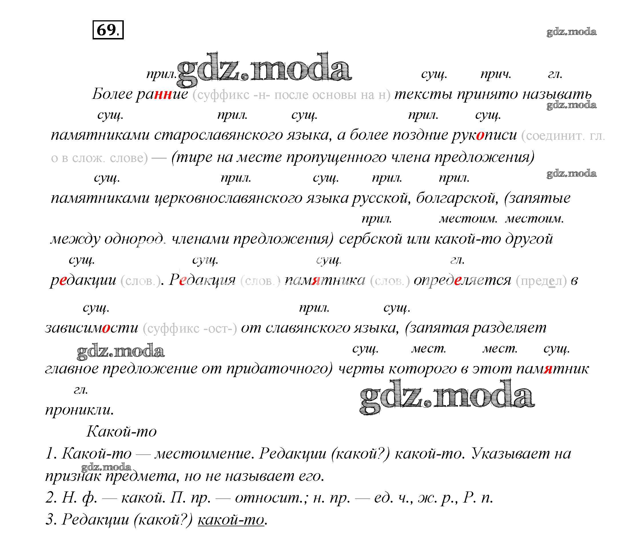 ГДЗ решение к заданию № 69 Русский язык 7 класс Шмелев А.Д. Вентана-граф 2016 ФГОС бесплатно на гдз.мода!