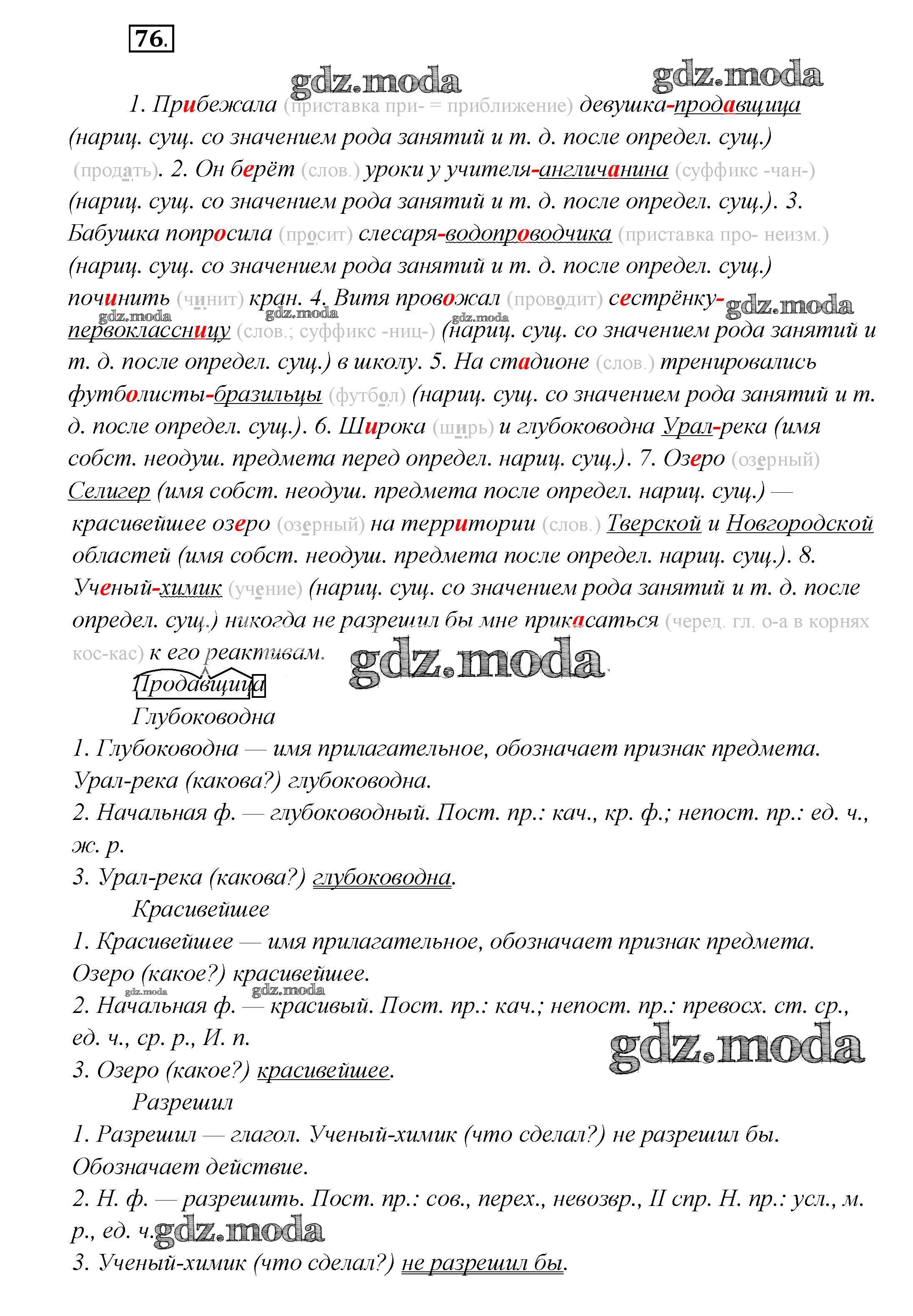 ГДЗ решение к заданию № 76 Русский язык 7 класс Шмелев А.Д. Вентана-граф 2016 ФГОС бесплатно на гдз.мода!
