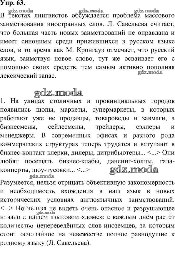 ГДЗ решение к заданию № 63 Русский родной язык 7 класс Александрова О.М. Просвещение 2020 ФГОС бесплатно на гдз.мода!