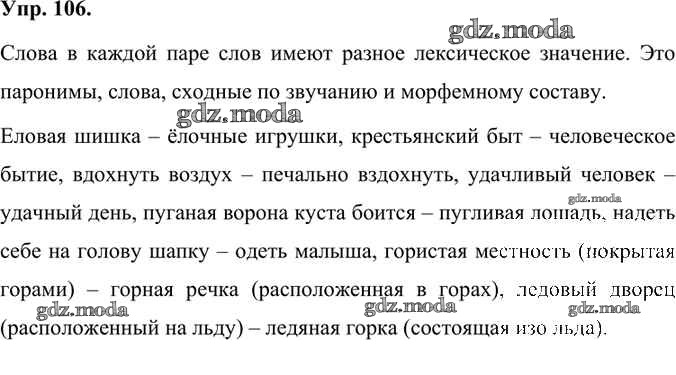ОТВЕТ на задание № 106 Учебник по Русскому языку 7 класс Быстрова Инновационная школа