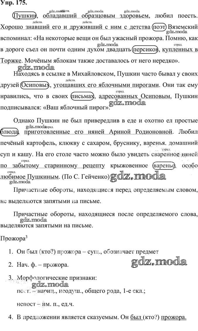 ГДЗ решение к заданию № 175 Русский язык 7 класс Быстрова Е.А. Русское слово 2019 Часть 1, Часть 2 ФГОС бесплатно на гдз.мода!