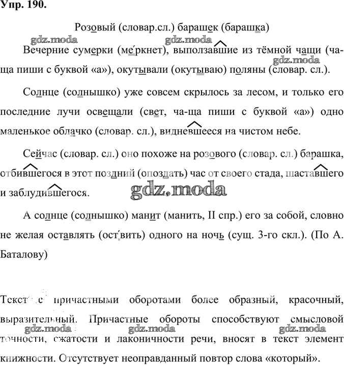 ГДЗ решение к заданию № 190 Русский язык 7 класс Быстрова Е.А. Русское слово 2019 Часть 1, Часть 2 ФГОС бесплатно на гдз.мода!