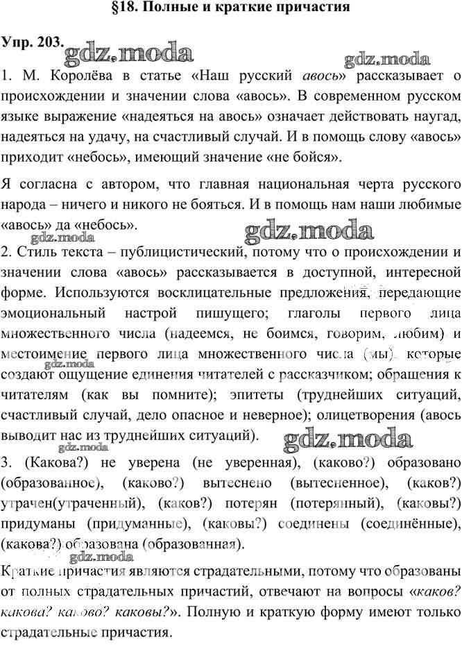 ОТВЕТ на задание № 203 Учебник по Русскому языку 7 класс Быстрова Инновационная школа
