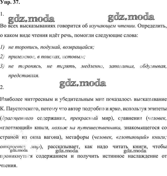 ГДЗ решение к заданию № 37 Русский язык 7 класс Быстрова Е.А. Русское слово 2019 Часть 1, Часть 2 ФГОС бесплатно на гдз.мода!