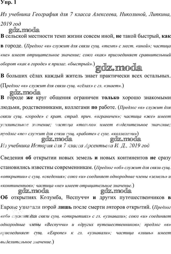 ГДЗ решение к заданию № 1 Русский язык 7 класс Быстрова Е.А. Русское слово 2019 Часть 1, Часть 2 ФГОС бесплатно на гдз.мода!