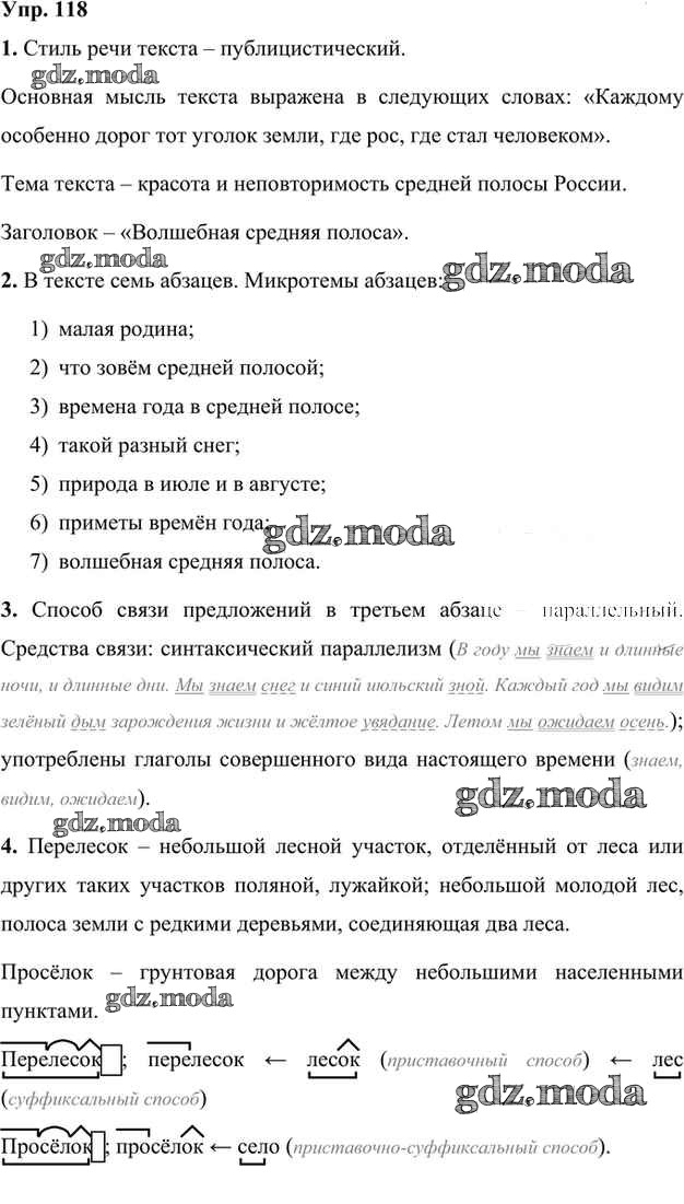 ГДЗ решение к заданию № 118 Русский язык 7 класс Быстрова Е.А. Русское слово 2019 Часть 1, Часть 2 ФГОС бесплатно на гдз.мода!
