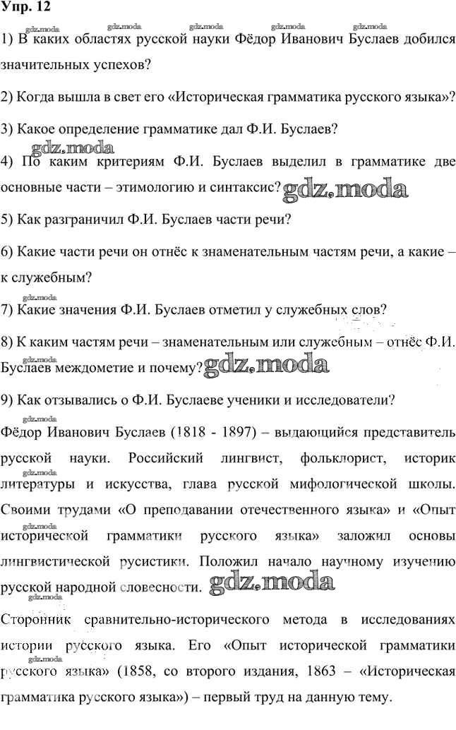 ГДЗ решение к заданию № 12 Русский язык 7 класс Быстрова Е.А. Русское слово 2019 Часть 1, Часть 2 ФГОС бесплатно на гдз.мода!