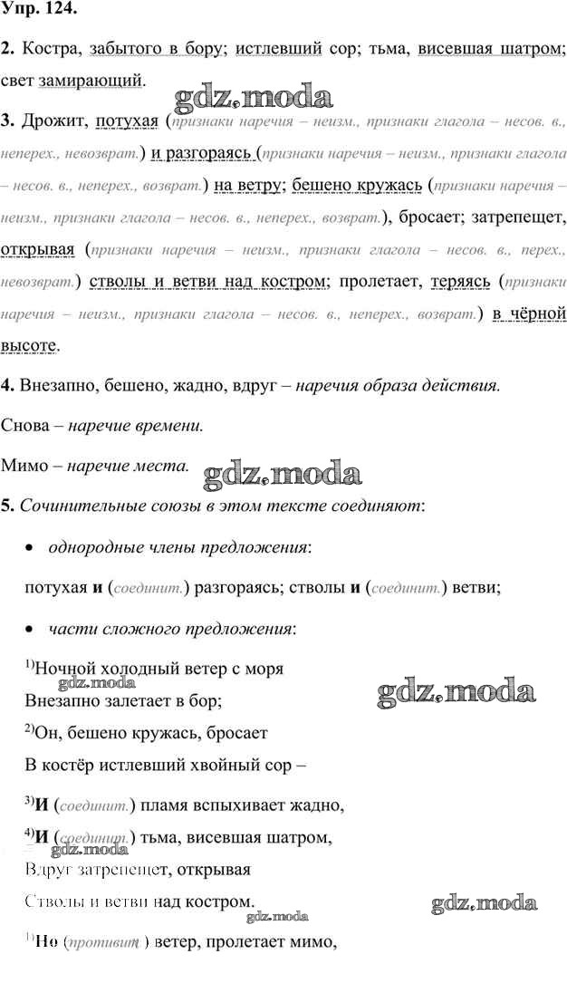 ГДЗ решение к заданию № 124 Русский язык 7 класс Быстрова Е.А. Русское слово 2019 Часть 1, Часть 2 ФГОС бесплатно на гдз.мода!
