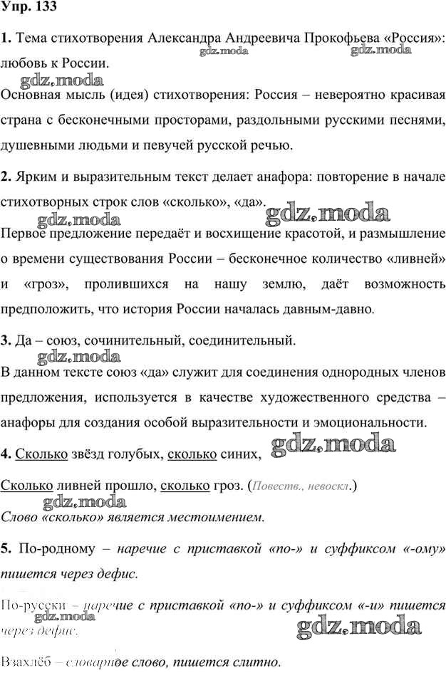 ОТВЕТ на задание № 133 Учебник по Русскому языку 7 класс Быстрова Инновационная школа