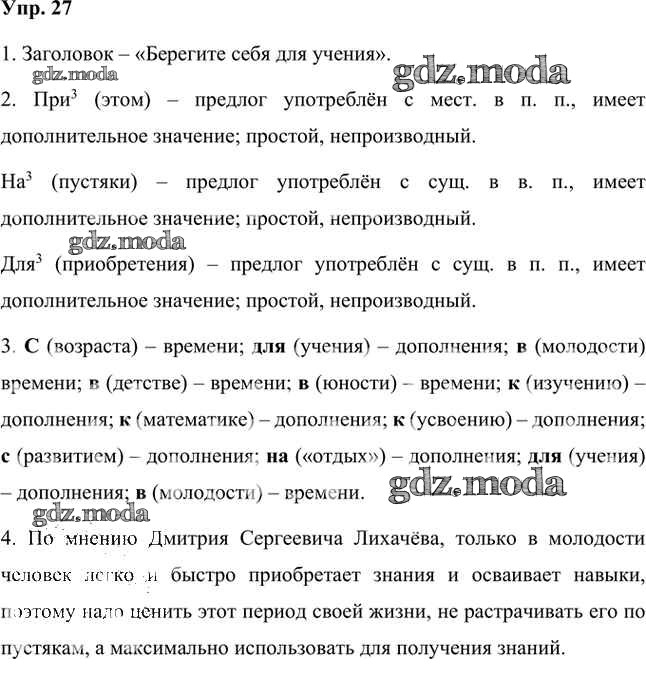 ГДЗ решение к заданию № 27 Русский язык 7 класс Быстрова Е.А. Русское слово 2019 Часть 1, Часть 2 ФГОС бесплатно на гдз.мода!