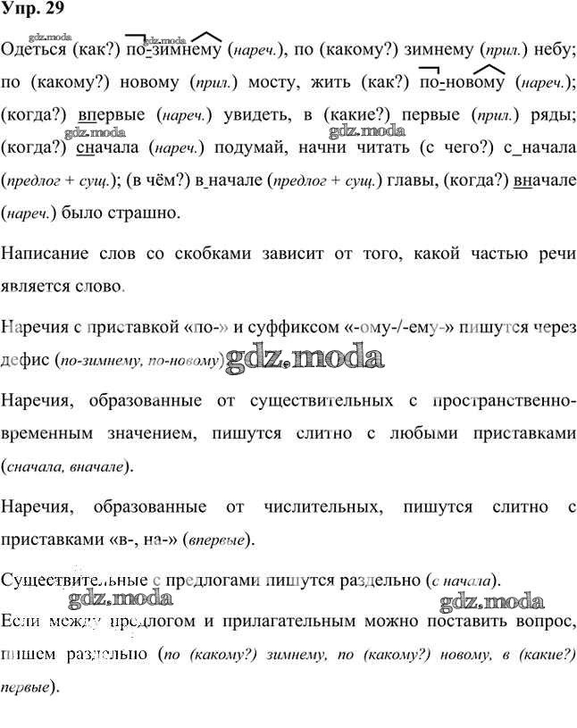 ГДЗ решение к заданию № 29 Русский язык 7 класс Быстрова Е.А. Русское слово 2019 Часть 1, Часть 2 ФГОС бесплатно на гдз.мода!