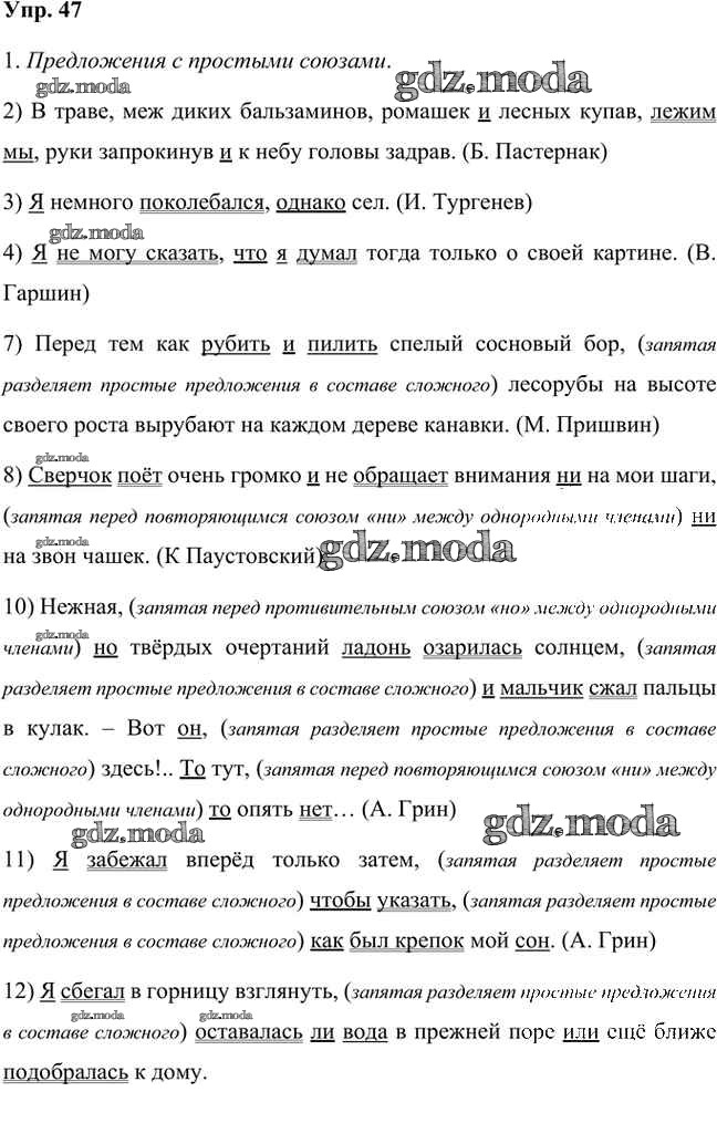ГДЗ решение к заданию № 47 Русский язык 7 класс Быстрова Е.А. Русское слово 2019 Часть 1, Часть 2 ФГОС бесплатно на гдз.мода!