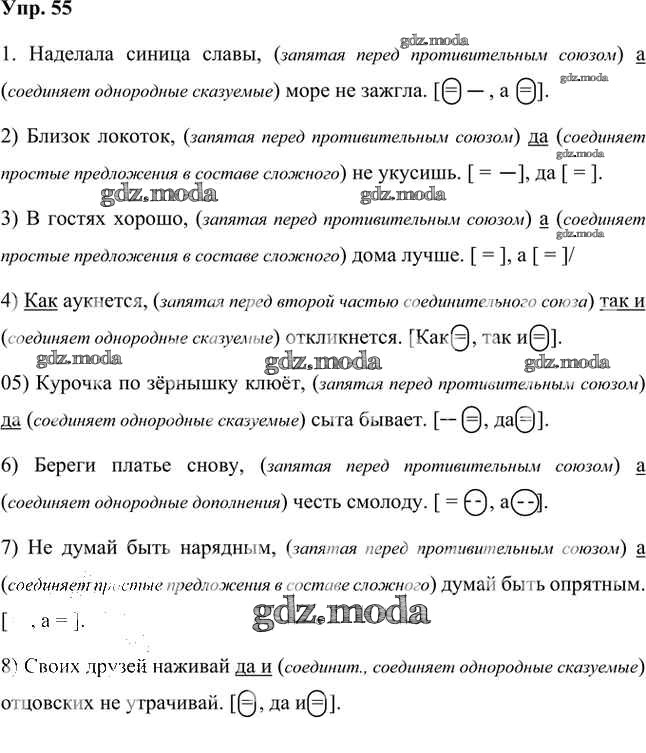 ГДЗ решение к заданию № 55 Русский язык 7 класс Быстрова Е.А. Русское слово 2019 Часть 1, Часть 2 ФГОС бесплатно на гдз.мода!