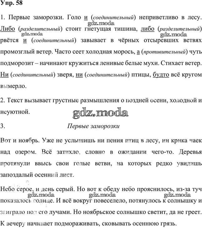 ГДЗ решение к заданию № 58 Русский язык 7 класс Быстрова Е.А. Русское слово 2019 Часть 1, Часть 2 ФГОС бесплатно на гдз.мода!