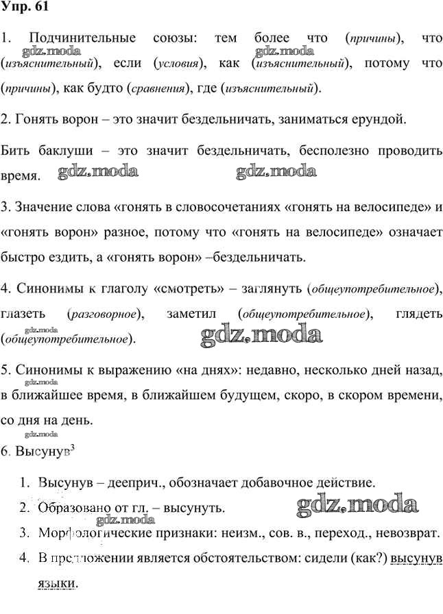 ОТВЕТ на задание № 61 Учебник по Русскому языку 7 класс Быстрова Инновационная школа