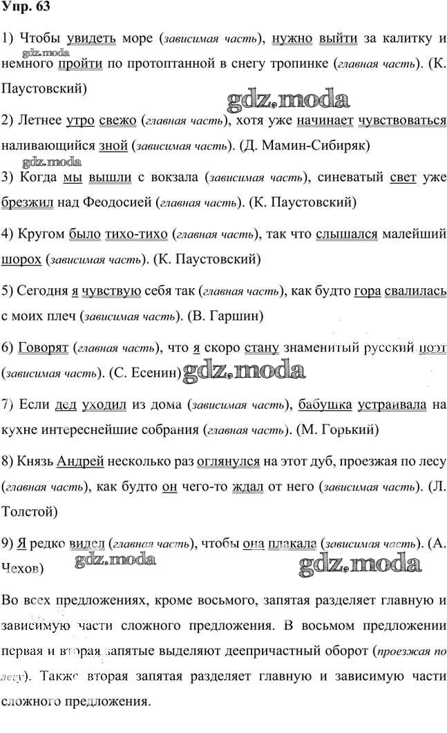 ГДЗ решение к заданию № 63 Русский язык 7 класс Быстрова Е.А. Русское слово 2019 Часть 1, Часть 2 ФГОС бесплатно на гдз.мода!