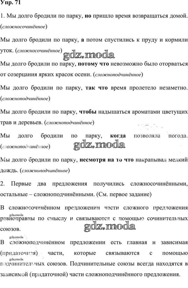 ГДЗ решение к заданию № 71 Русский язык 7 класс Быстрова Е.А. Русское слово 2019 Часть 1, Часть 2 ФГОС бесплатно на гдз.мода!