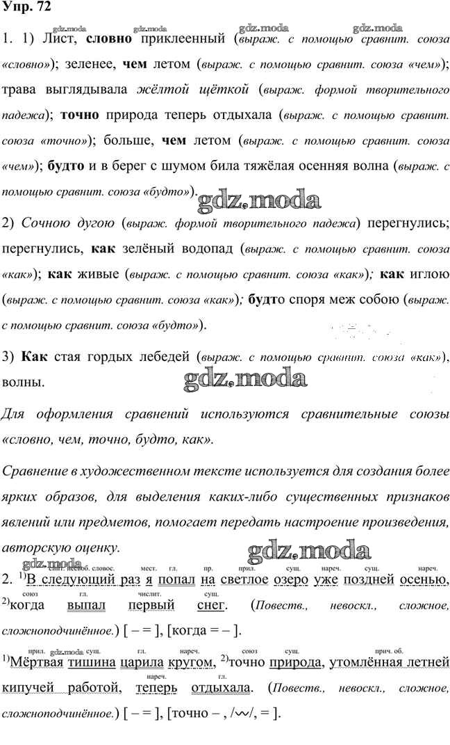 ГДЗ решение к заданию № 72 Русский язык 7 класс Быстрова Е.А. Русское слово 2019 Часть 1, Часть 2 ФГОС бесплатно на гдз.мода!