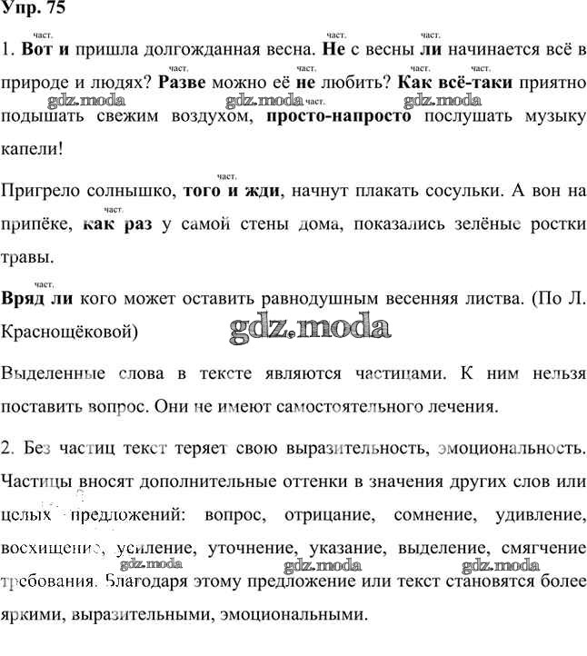 ГДЗ решение к заданию № 75 Русский язык 7 класс Быстрова Е.А. Русское слово 2019 Часть 1, Часть 2 ФГОС бесплатно на гдз.мода!